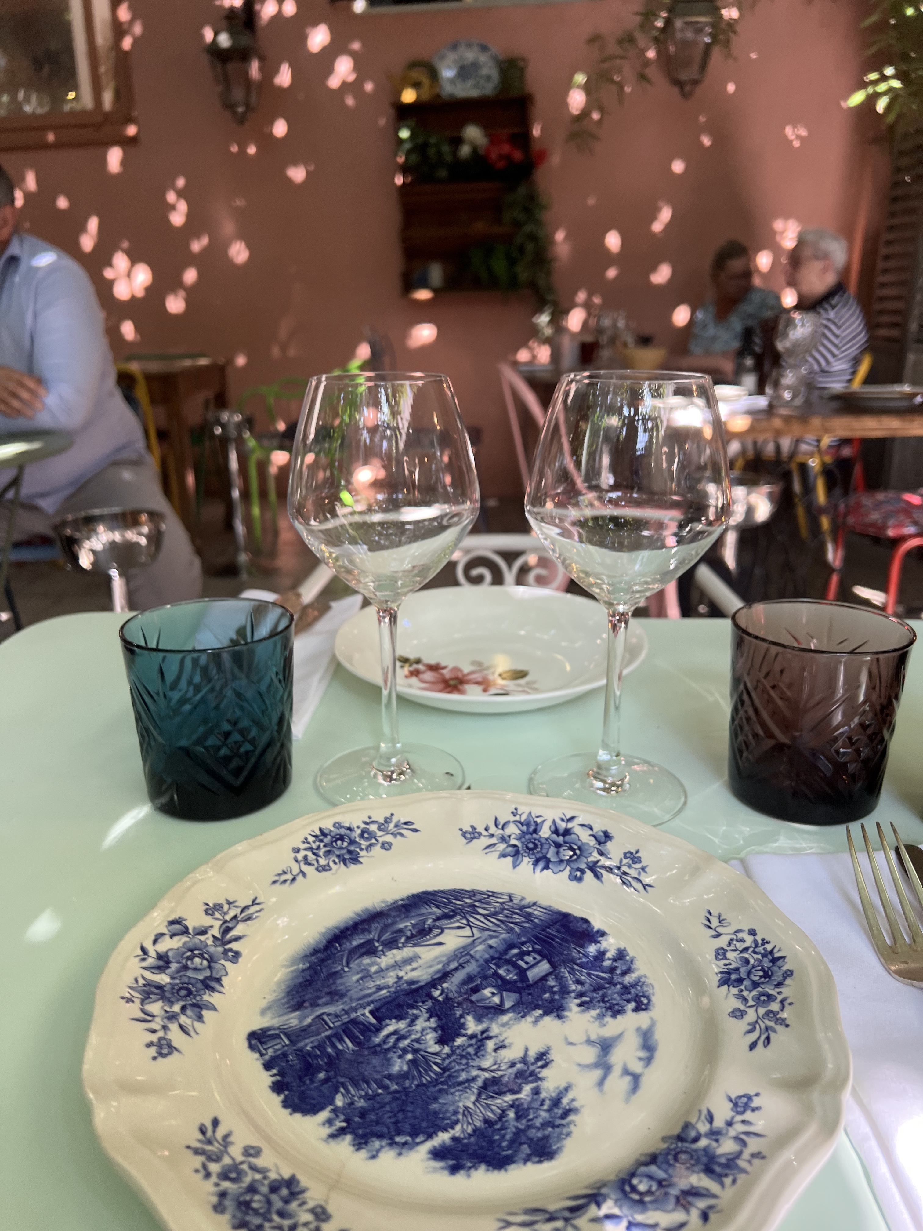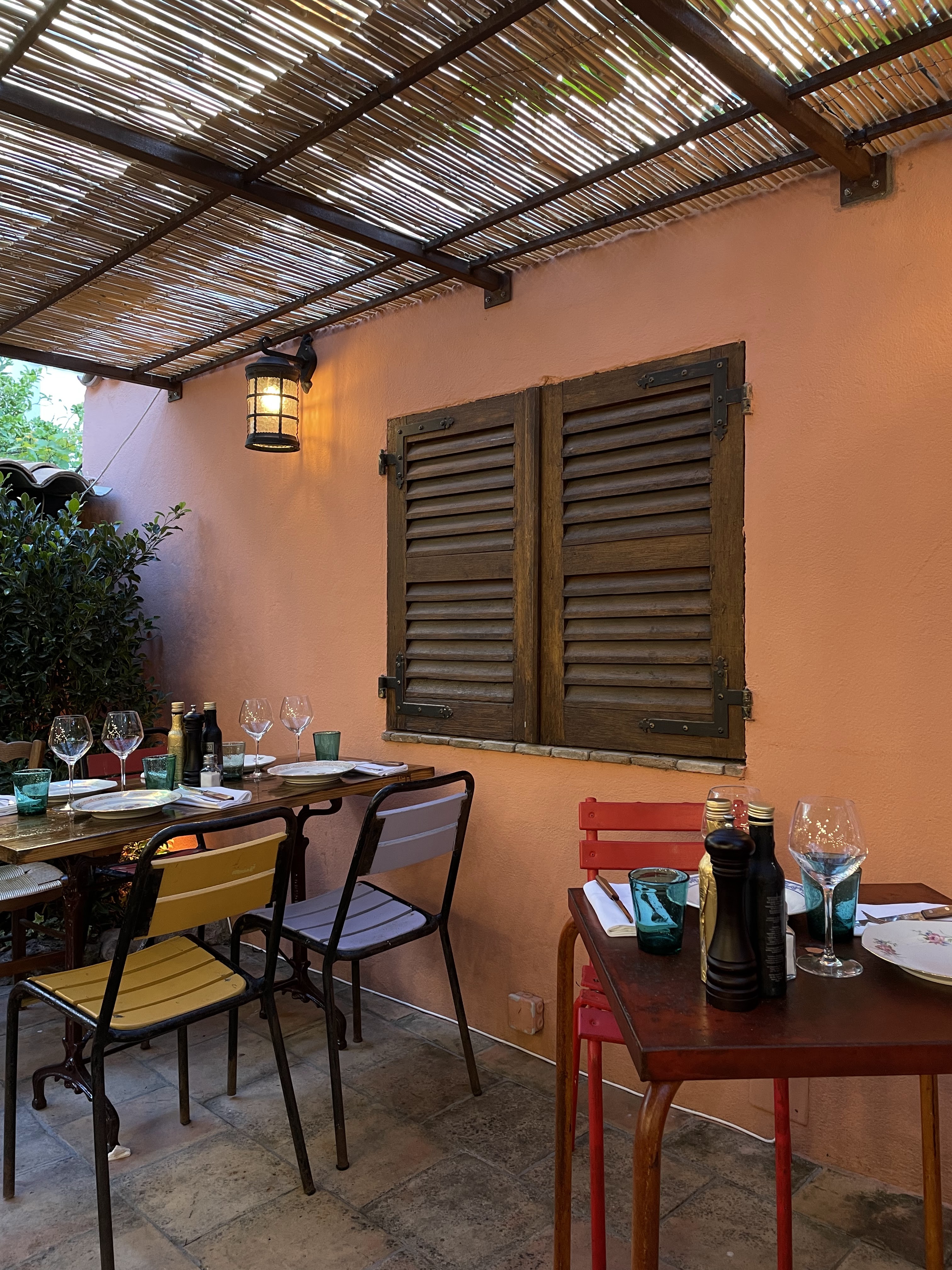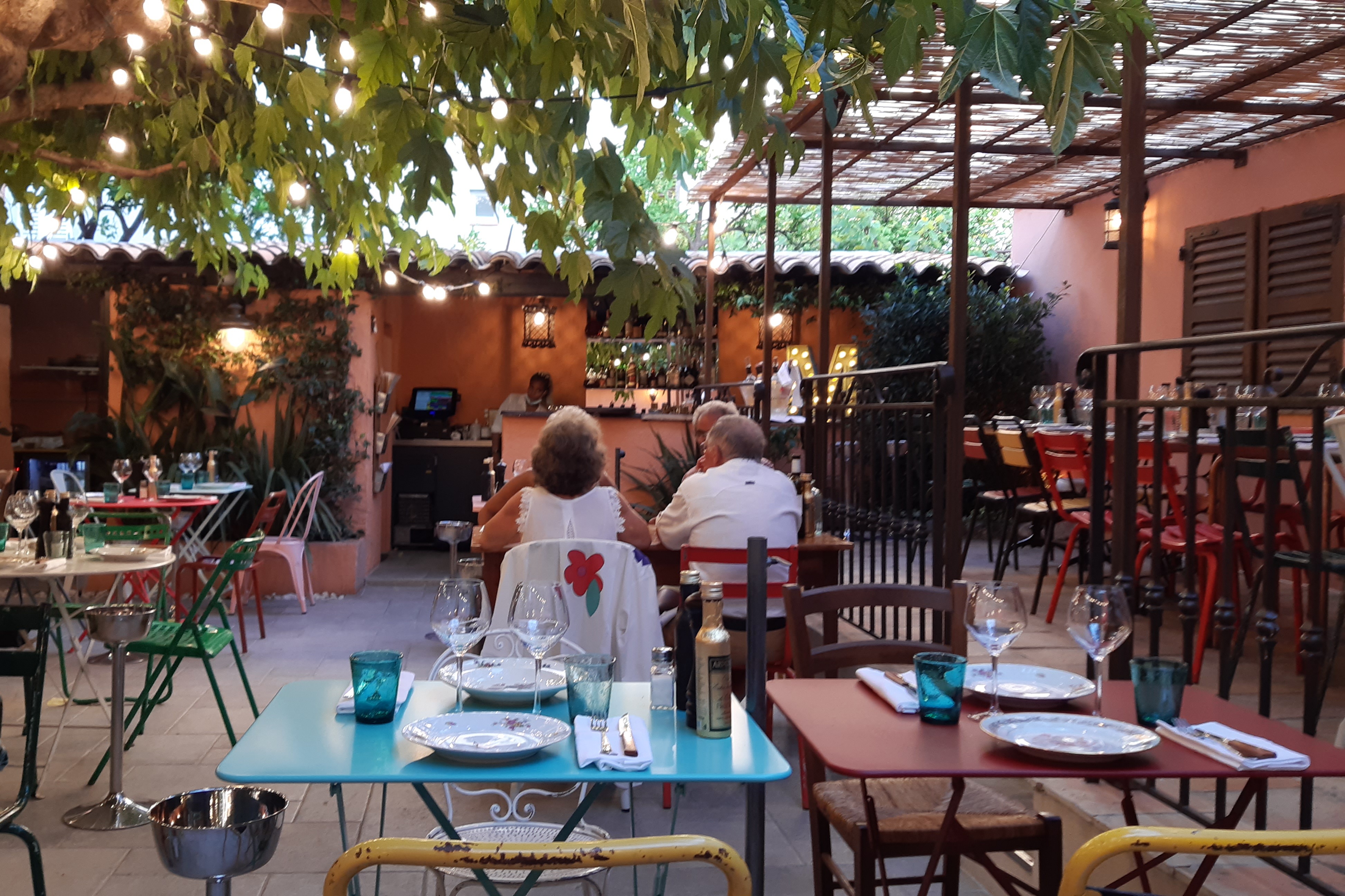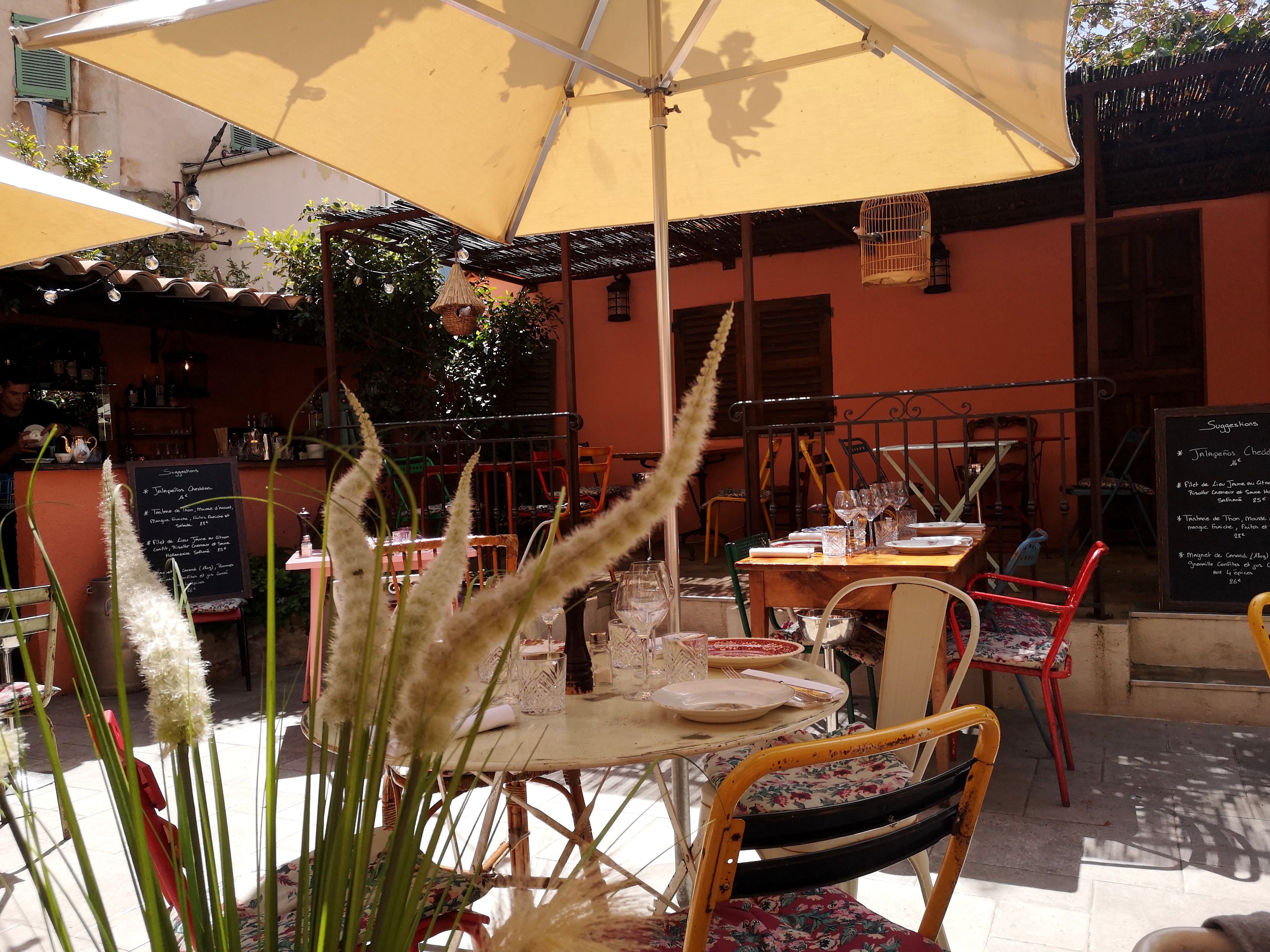 Une excellente adresse au coeur du vieille Antibes. Un cadre magnifique, une petite cours ou se cache un gros arbre illuminé par de longues guirlandes. Des tables, chaises et assiettes dépareillées qui nous mettent de suite dans l’ambiance convivial et décontracté du lieu. Une courte carte synonyme de fraîcheur nous a ouvert l’appétit. J’ai fait le choix d’un délicieux risotto au crevettes, servis dans une belle casserole. Nous reviendrons quand nous aurons plus de temps, pour goûter les desserts qui avait l’air excellent !