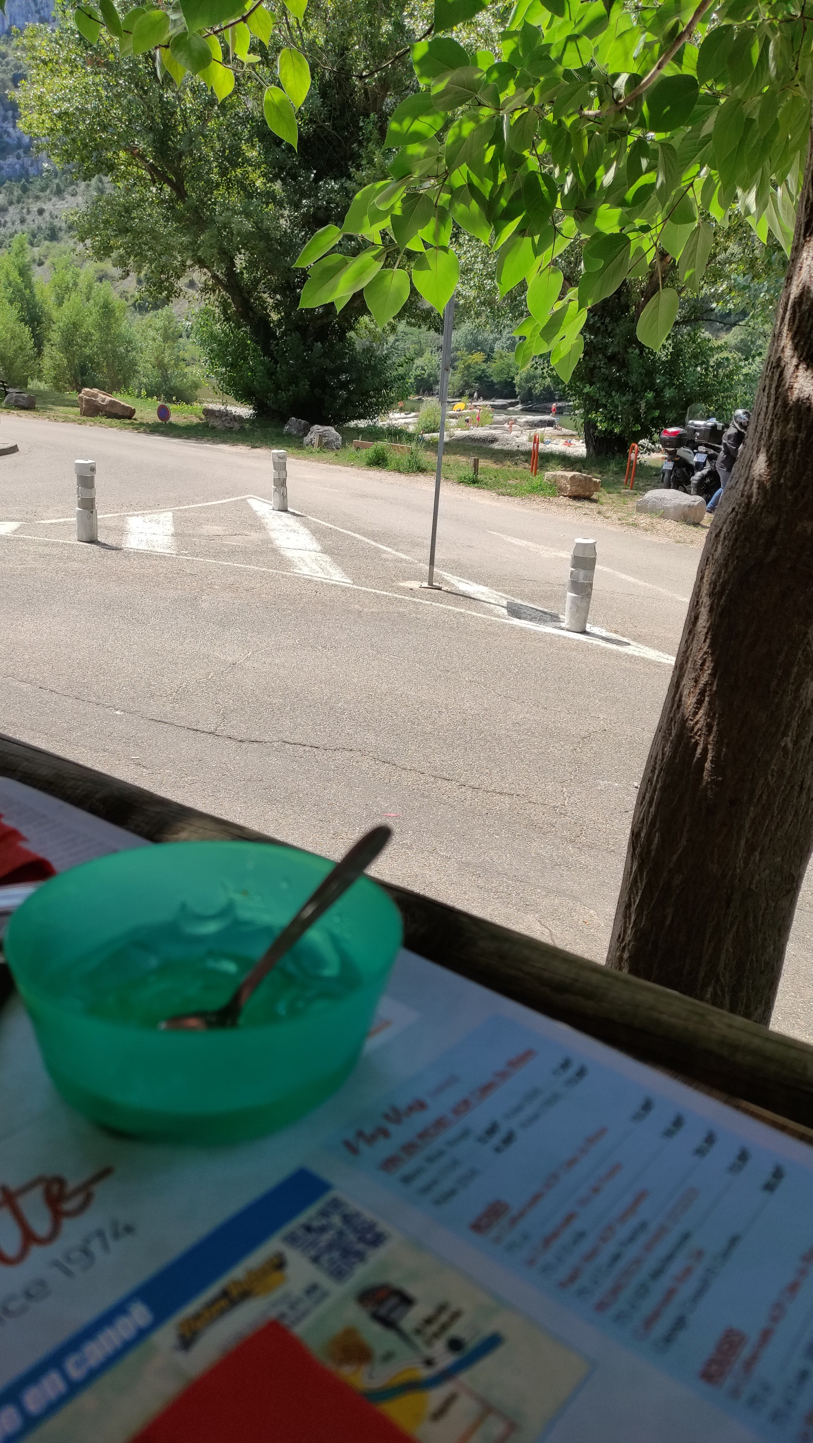 Lors de notre venue pour la location de canoë nous avons fait une halte au départ et à l'arrivée et nous avons été très bien accueilli. La terrasse est ombragée, et des brumisateurs sont installés. Petit Plus , le petit kiosque dans l'espace restauration ! Belle saison à vous !