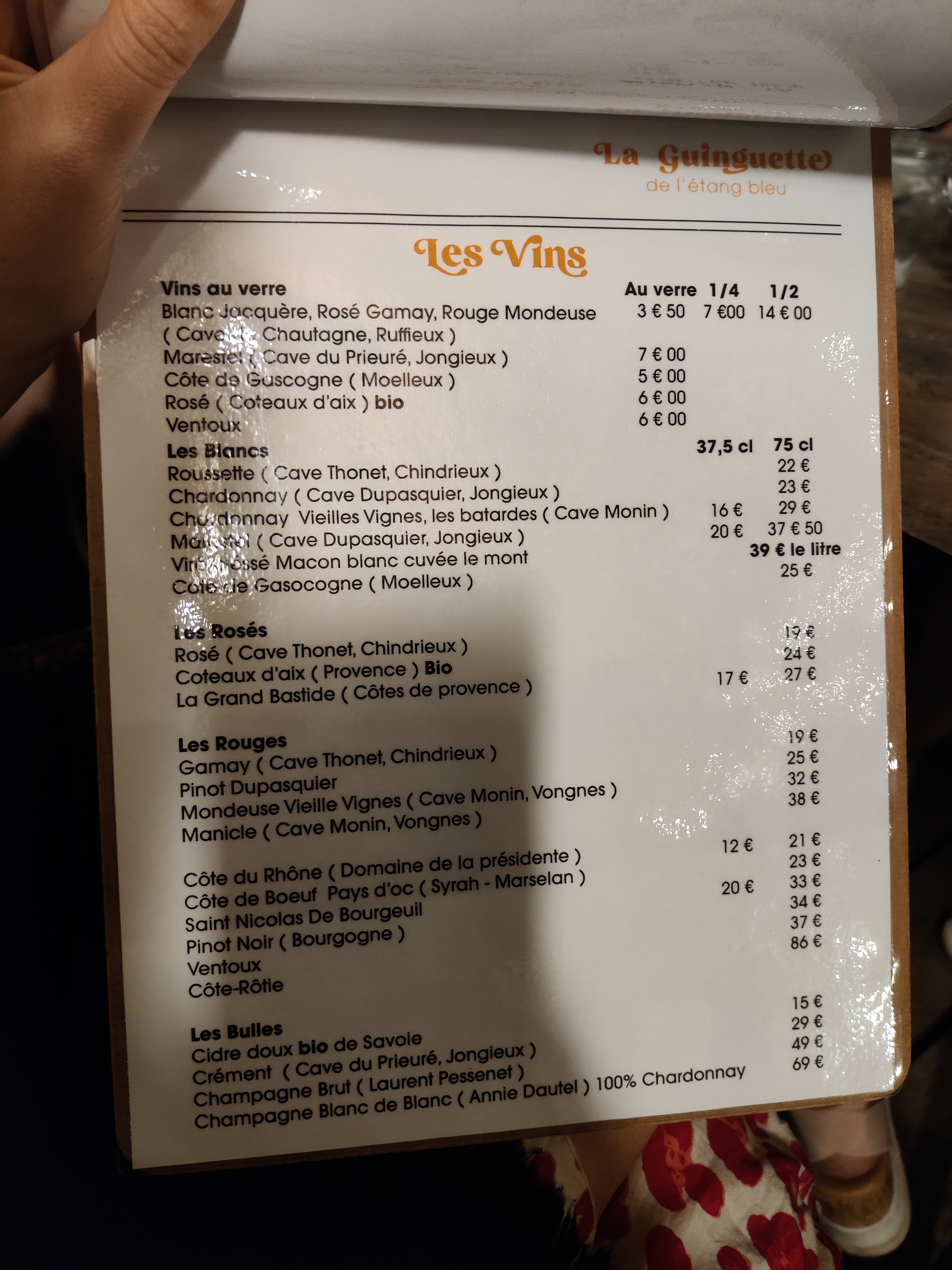L'ambiance et le lieu sont très sympas. Le repas super bon. Nous avions pris rognons frites et Diot de chautagne