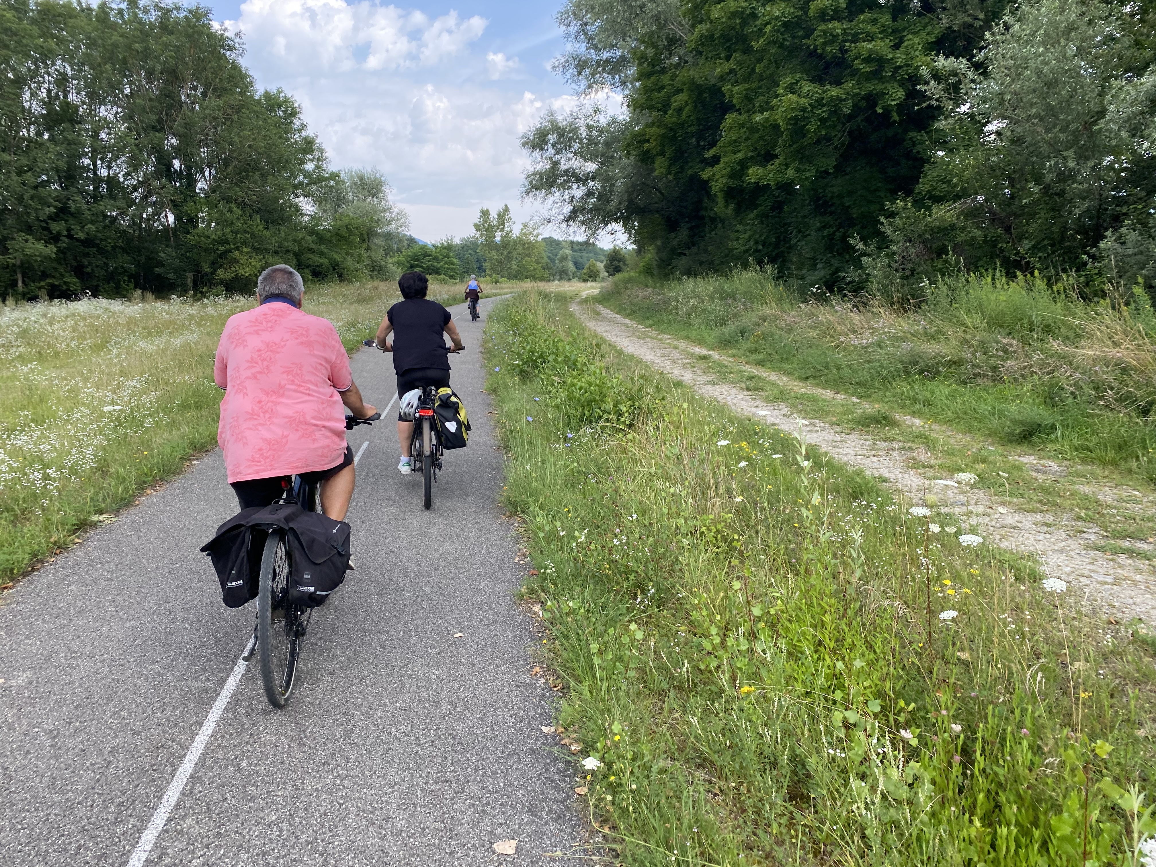 Pause déjeuner sur notre périple du jour en vélo, parfaitement situé sur la via rhona. Accueil chaleureux et eau fraîche à volonté, on en avait bien besoin.