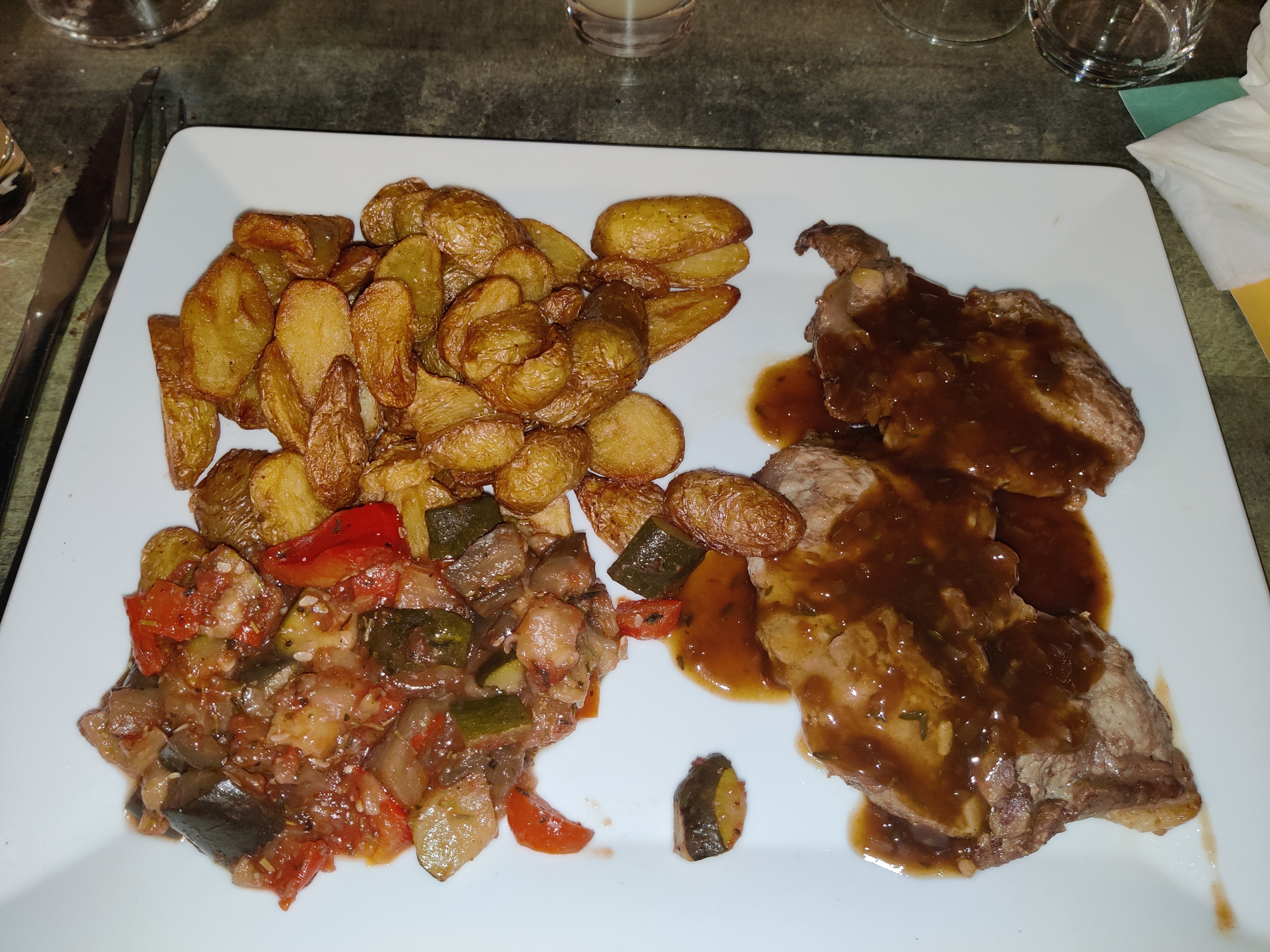 Très beau cadre belle assiette les plats sont bon ,je ne met pas 5 étoile car couteaux sale mais cela arrive. Pour le reste très bien nous reviendrons