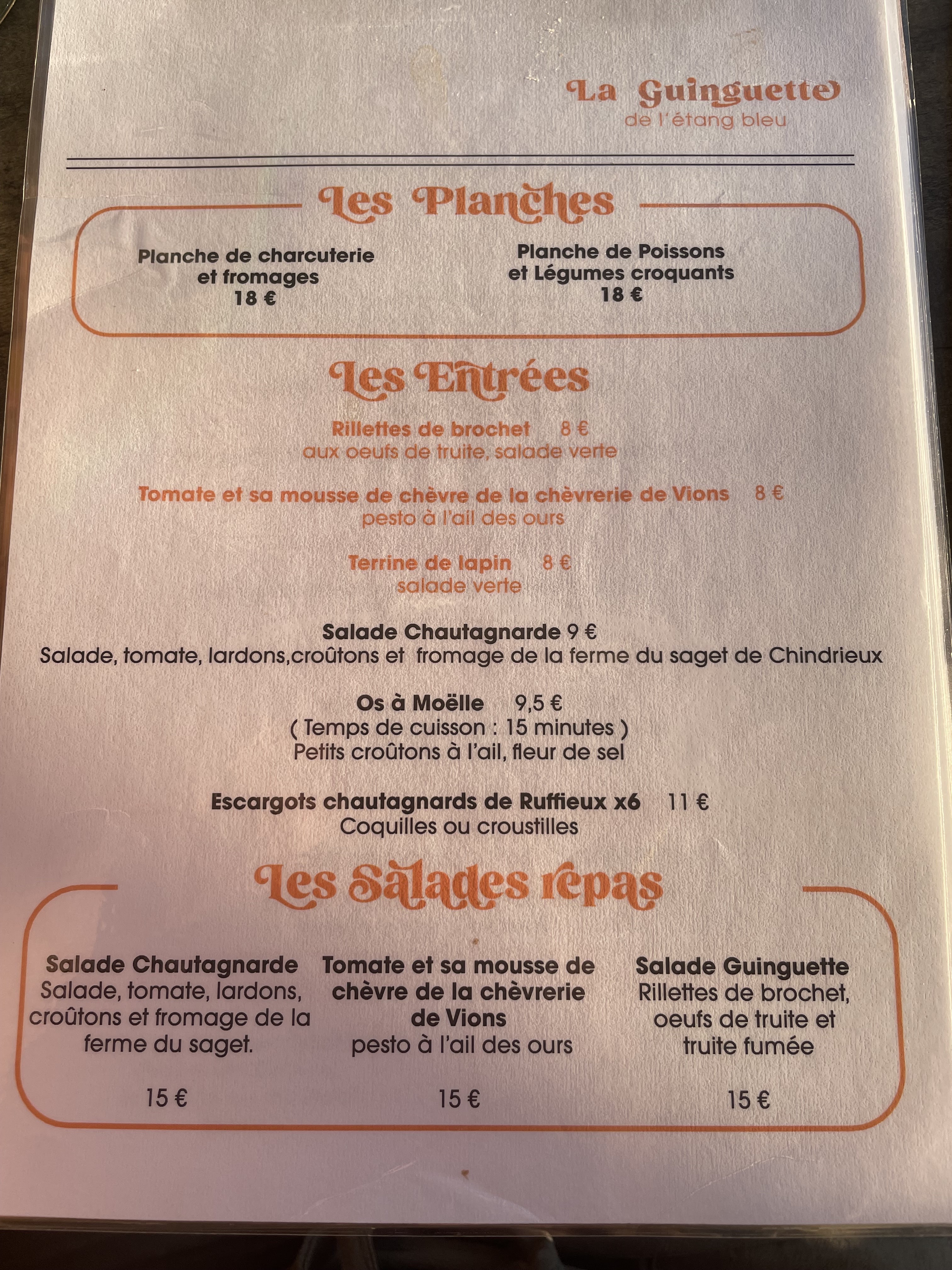 Oh la guinguette !!!! Tout un poème, tout le monde adoré et se retrouve en tte convivialité, musique le soir ,pétanque, c'est un paradis entier en soi!!! J'y retourne ce soir, et en plus personne augmente les prix là bas. Merci à tte cette équipe soudée et dévouée, et grand Bravo au Chef Cuisinier sur qui Tout repose....bonne Saison 2022.