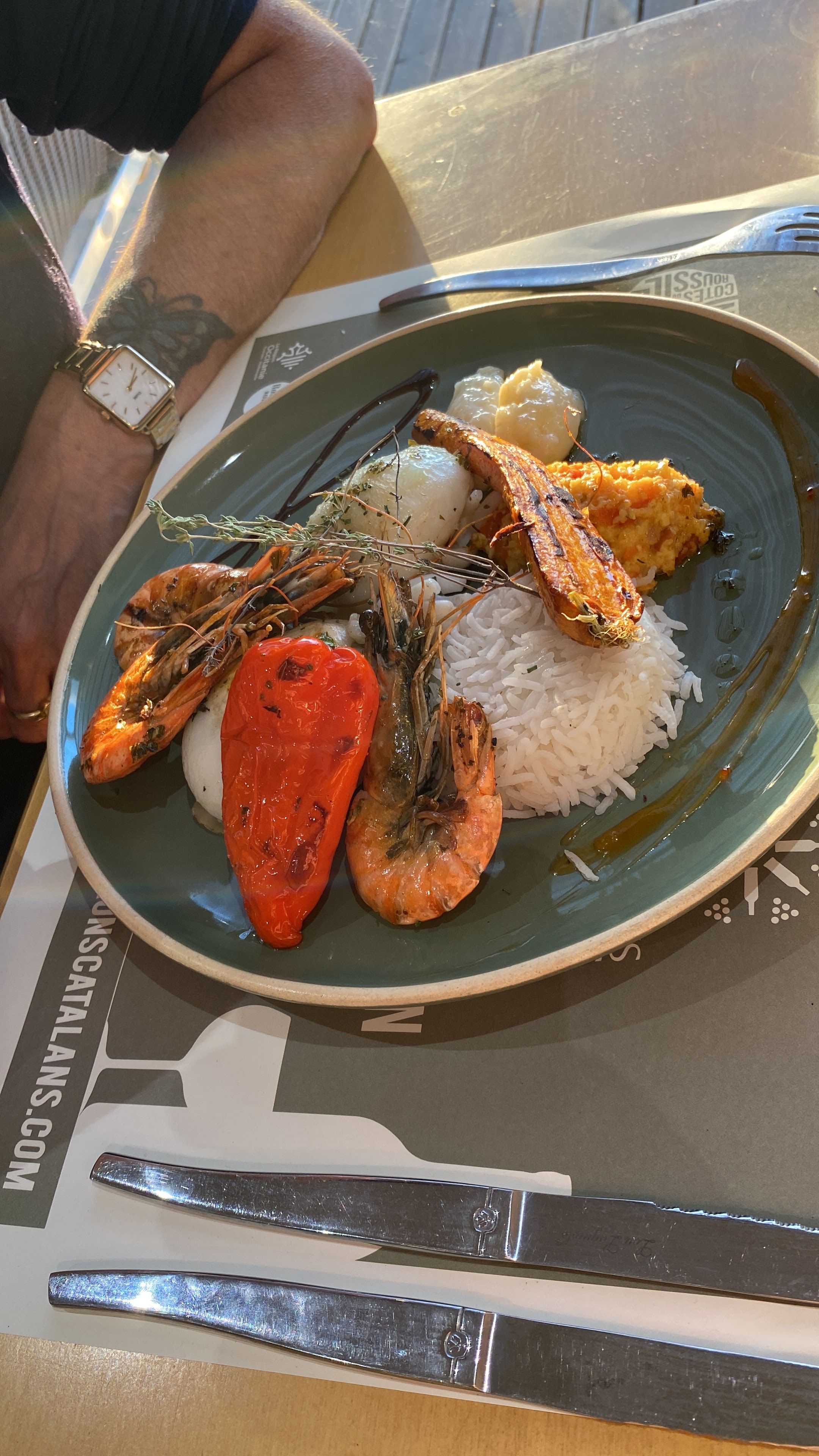 Si vous souhaitez savourer une savoureuse cousine avec une vue parfaite sur le magnifique coucher de soleil à Barcares, alors c'est votre véritable choix. P.s. Les poivrons Padron sont un incontournable sur votre table !