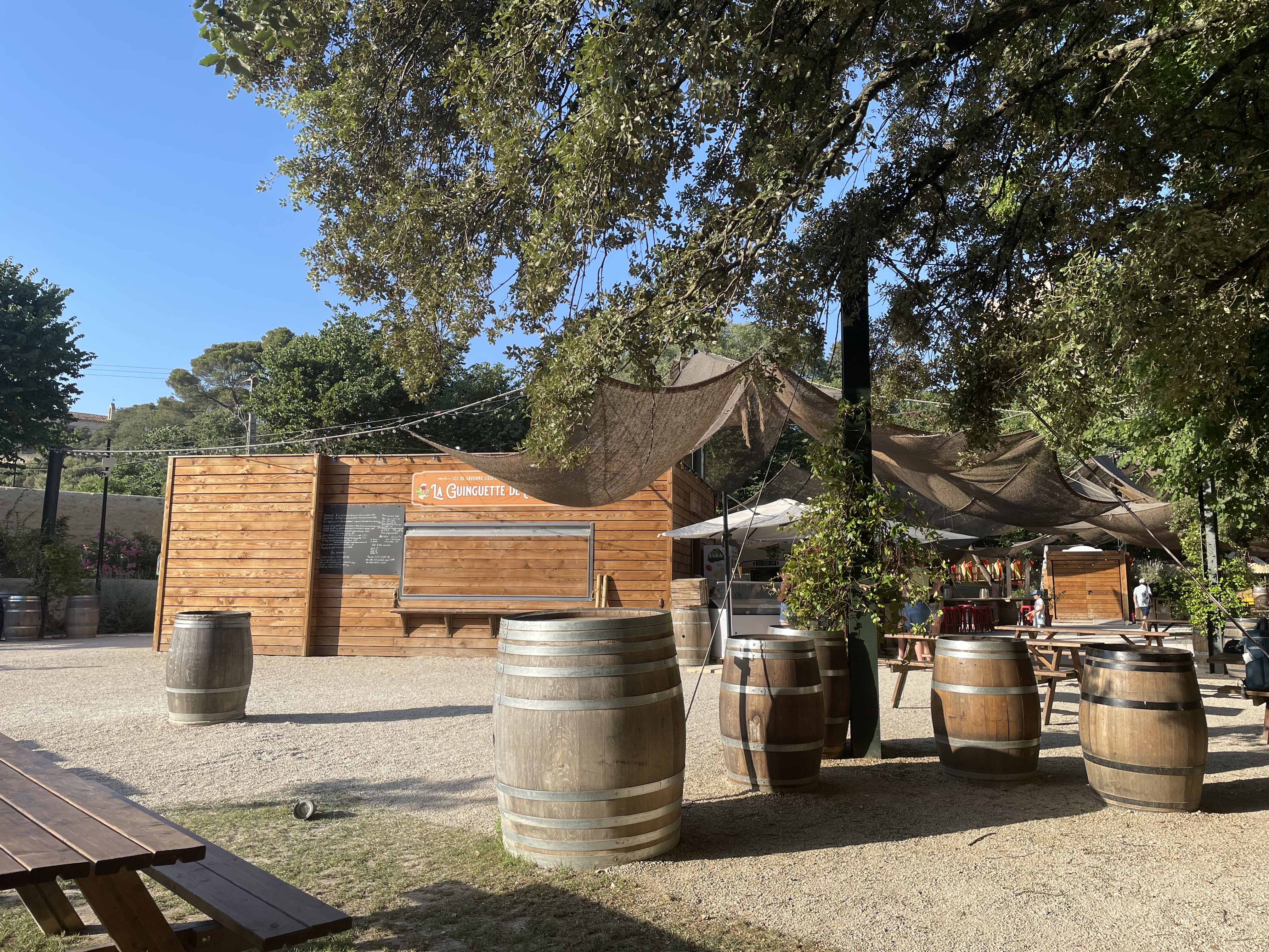 Dommage, le lieu est très agréable et a beaucoup de potentiel mais les prestations ne sont pas à la hauteur. La moitié de la carte n’est pas disponible alors que nous sommes le premier samedi des grandes vacances. Pas de pain bagnat, plus de salade fusili, pas de planche de charcuterie ce soir. La guinguette propose des bières pression, mais pas de gobelet pour les pintes… Pas de granité sur le midi, le problème semble résolu pour le soir. Petite suggestion : ajouter une planche de fromage ou une planche mix charcuterie-fromage 😬.