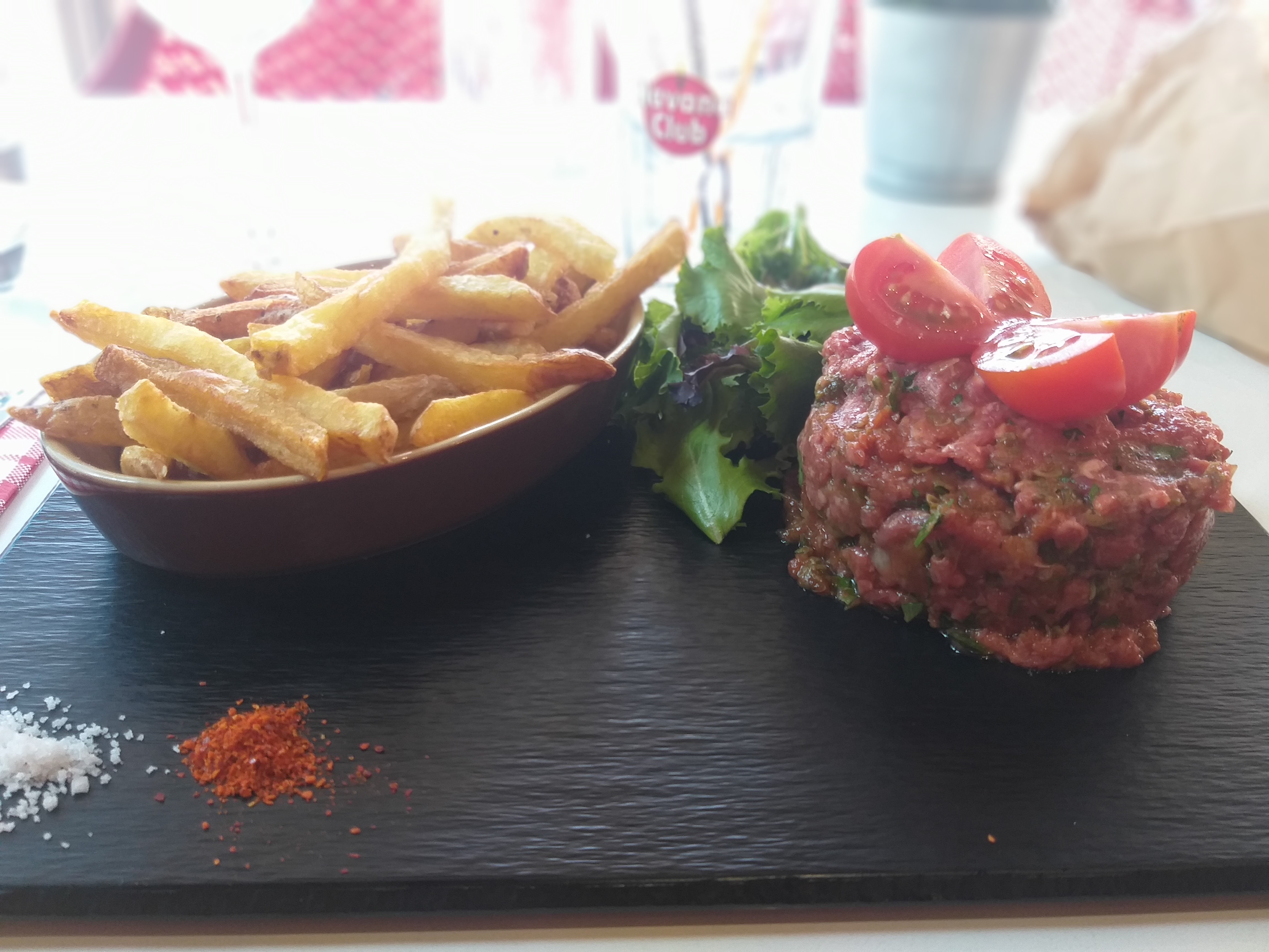 Je m'étais trompée de plat, je pensais commander un carpaco de bœuf, mais en fait c était un tartare. Mea culpa , surprise qd le serveur est arrivé avec le carpaco. Il n a pas hésité une seconde pour changer le plat. L entrecôte était très bonne ainsi que les frites et la salade. Très bon service
