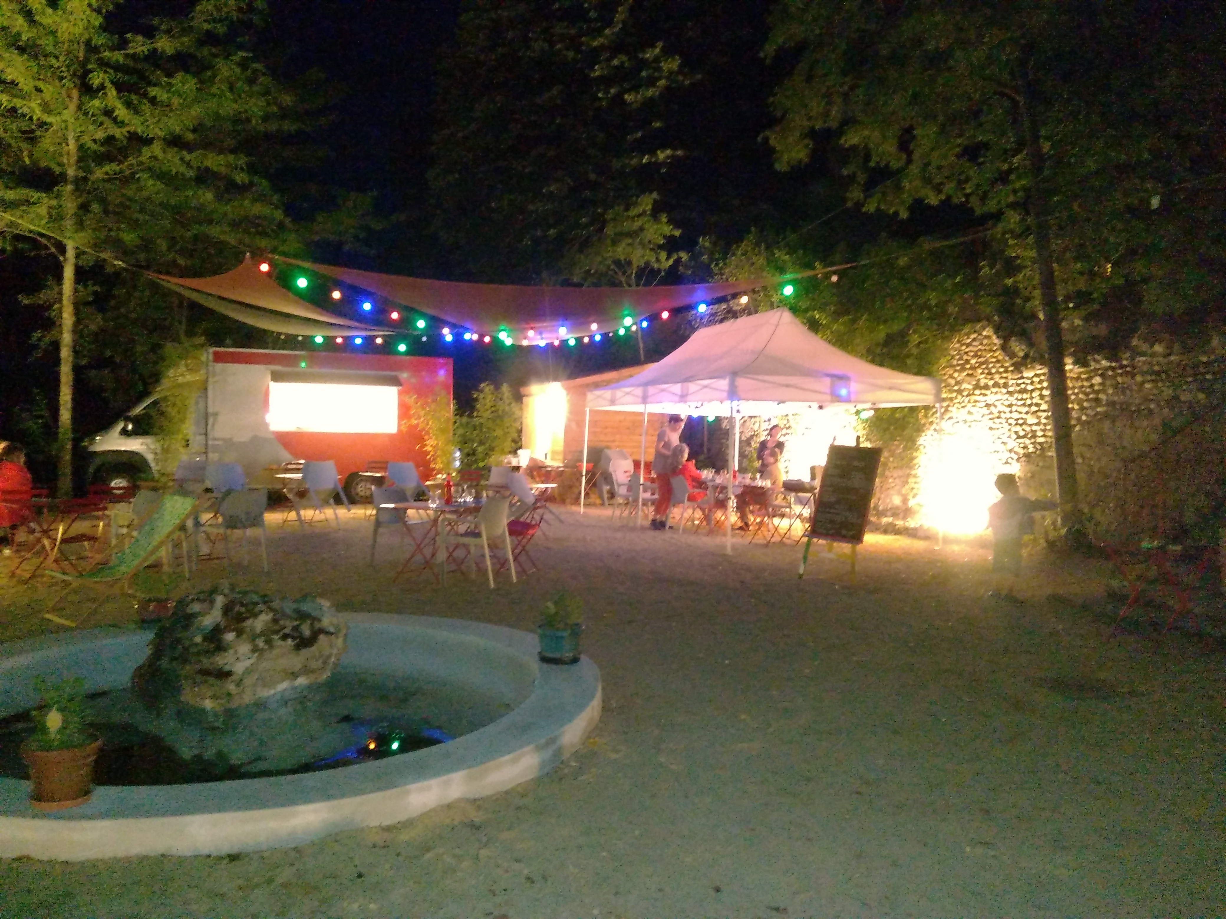de passage dans le coin, on a testé, Alors, amateurs de mets fins, d'ambiance guindée, de porcelaine chic, fuyez !!! on est dans une clairière, habitée par des lutins.... le ( tuba fontaine )gémit, et la musique est baroque, super . le décor poétise l'ambiance, en plus, la nourriture est correcte, et les prix sont domptés..... Parlez avec le patron qui a un parcours atypique.... Moi, j ai passé une bonne soirée.......