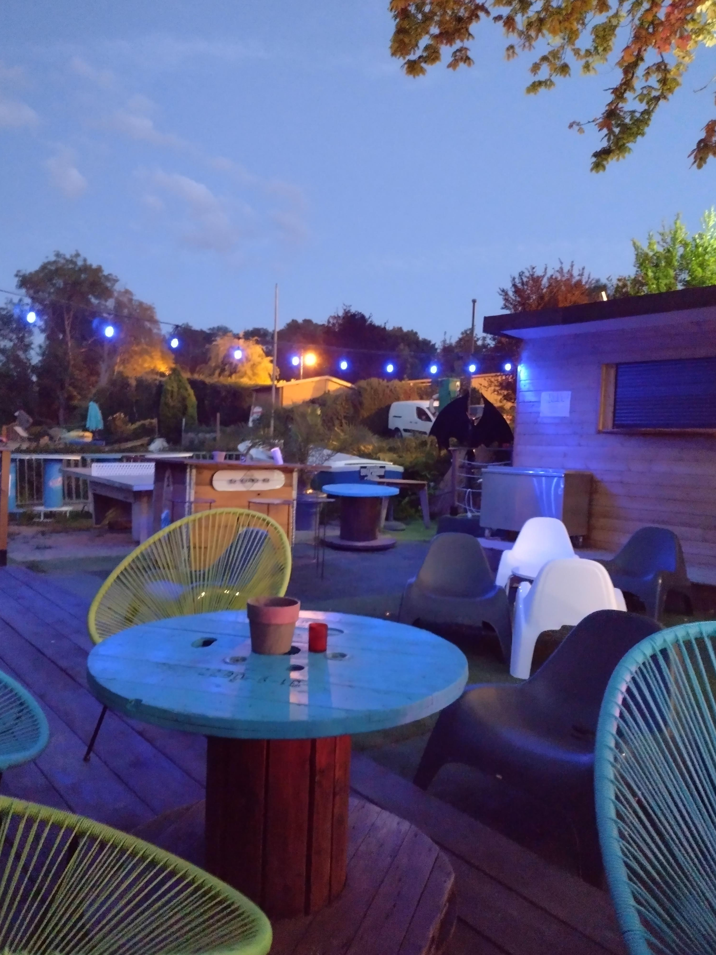 Trop top, beaucoup de charme, on se croirait en bord de marne, des groupes de musiques programmés certains soir, terrasse tout en verdure ,dîner autour de braseros, original.