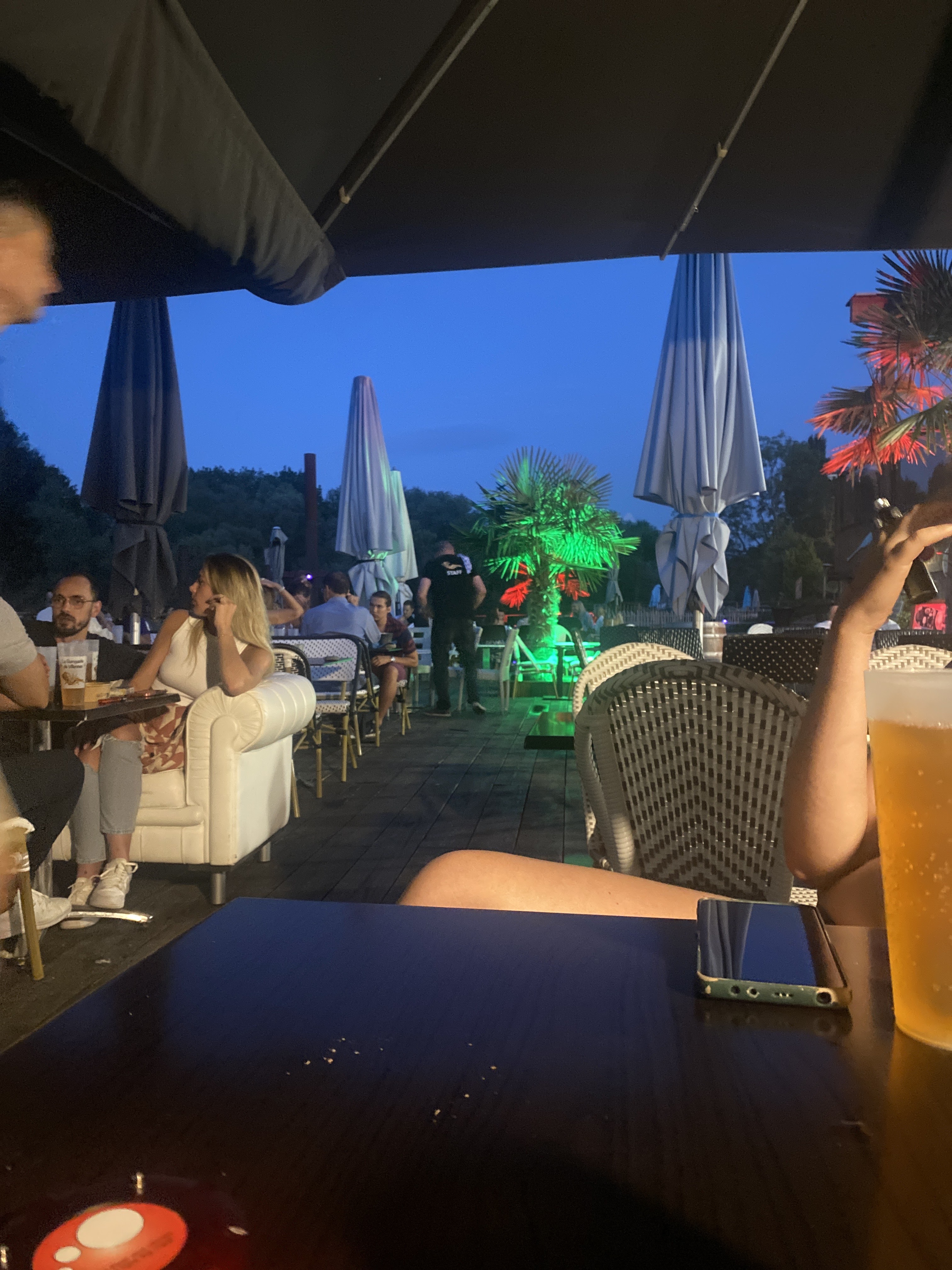 Ambiance sympa dans un cadre agréable. Seul bemol et en sortie de covid ou le risque est toujours imminent les gestes barrières étaient peu présents (trop de monde...les uns collés aux centre pour danser...manque d organisation et vente forcée!!!! Pour boire un coca il faut en acheter 3.... En conclusion je suis venue pour un anniversaire mais autrement je ne serais pas venue surtout à cause des gestes barrières