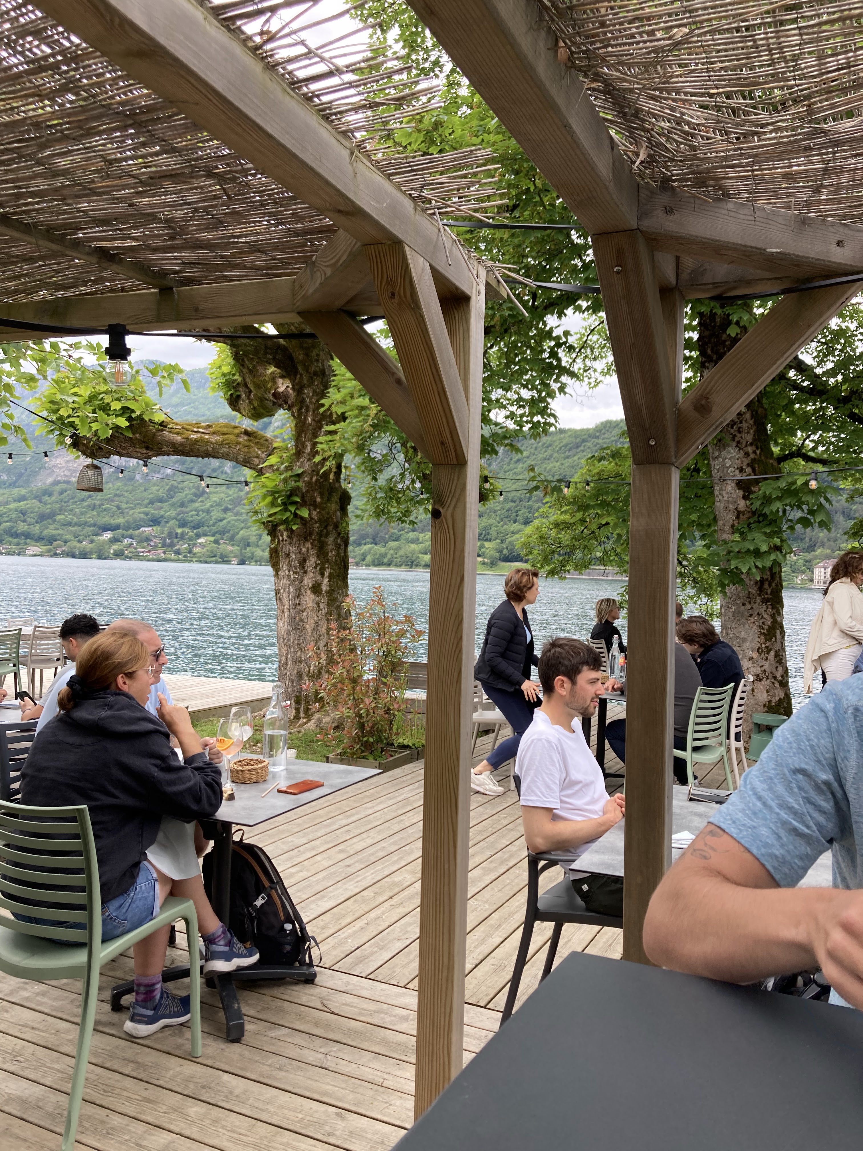 Nous y avons organisé un grand déjeuner familial à l'occasion du baptême de nos enfants au sortir du confinement. Tous les convives ont apprécié la qualité des plats, des vins, le cadre idyllique évidemment mais aussi et surtout le service très pro et en même temps très convivial de l'équipe. Pour moi un des meilleurs spots sur le lac.