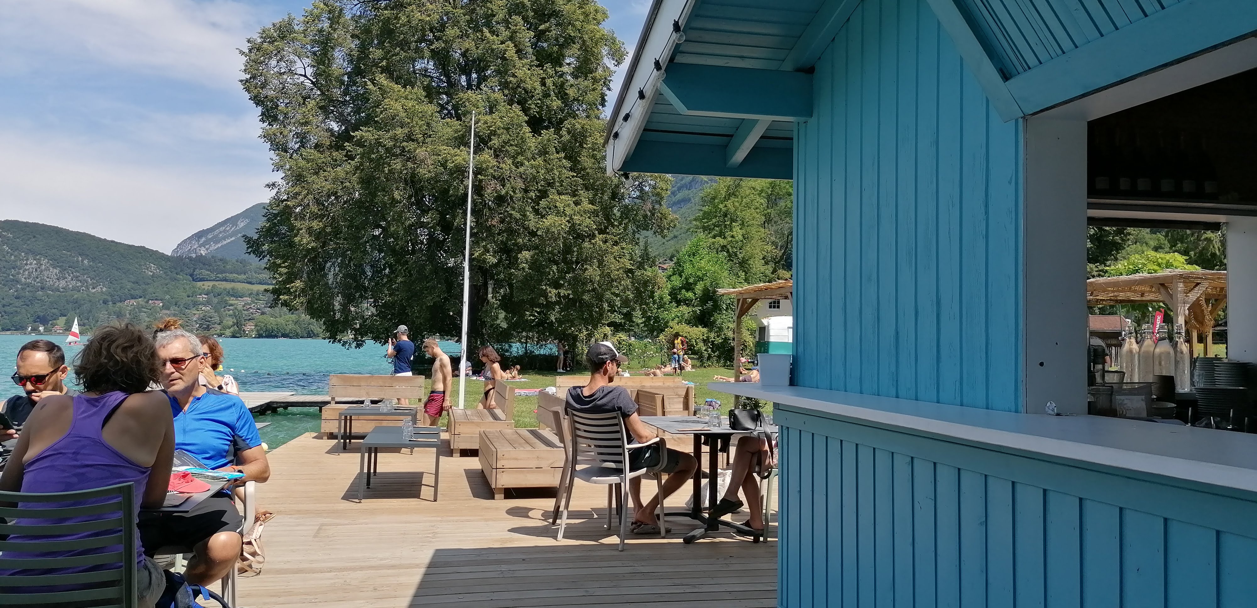 Guinguette très conviviale, idéalement placée en bord de lac tout en restant raisonnable en prix et en mettant à l’honneur les producteurs locaux. Merci à tout l’équipe pour votre accueil. A ne pas manquer si vous venez sur Annecy