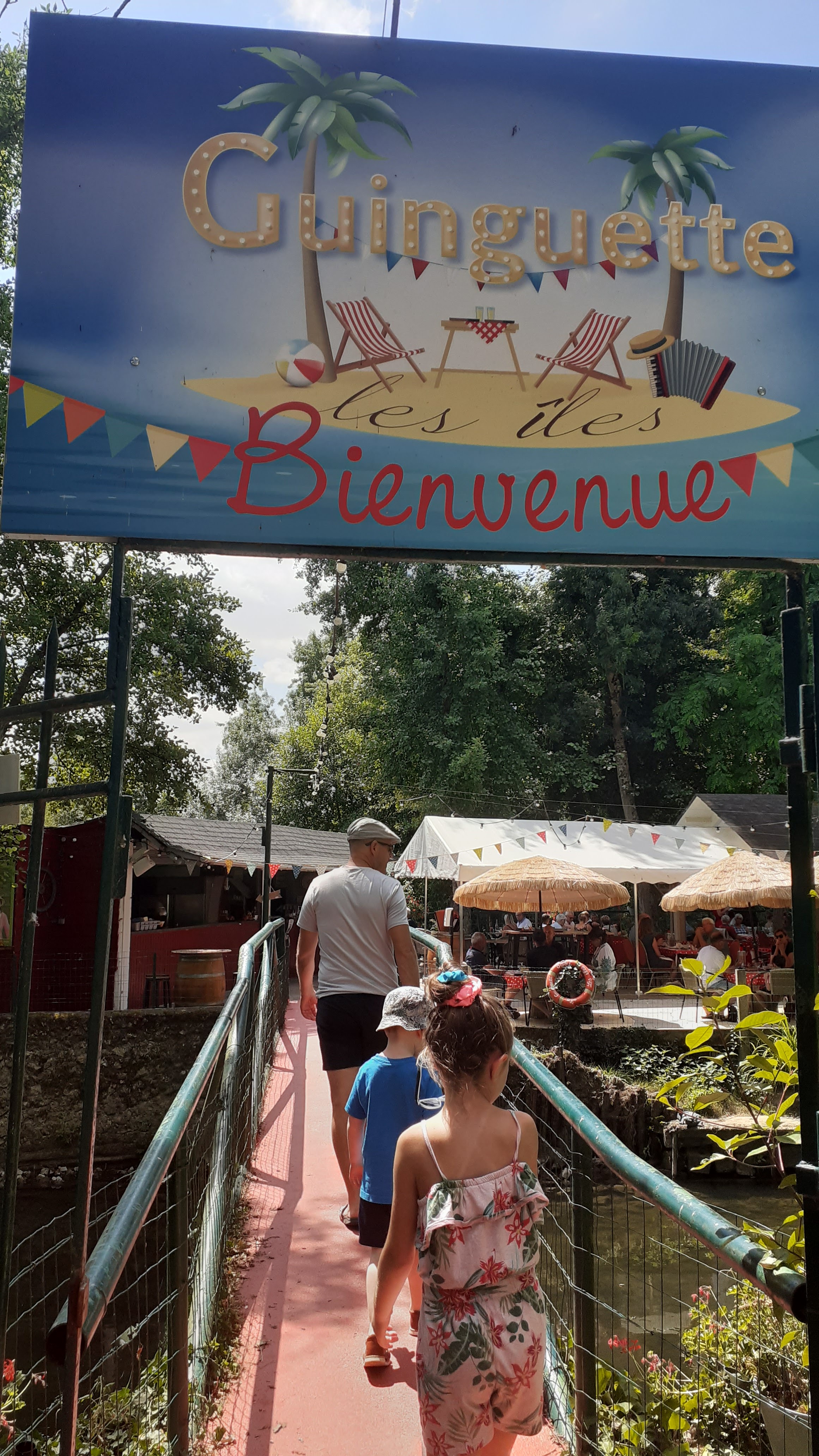 Lieu situé sur une petite île. Très bonne cuisine. Ingrédients de qualité bien préparé, bien présenté et le service est souriant. L'ambiance guinguette est respecté. Le parking est vaste et ombragé. Le village est bien indiqué et les informations sur la guinguette arrivent au dernier moment. Le village mérite une petite visite également.