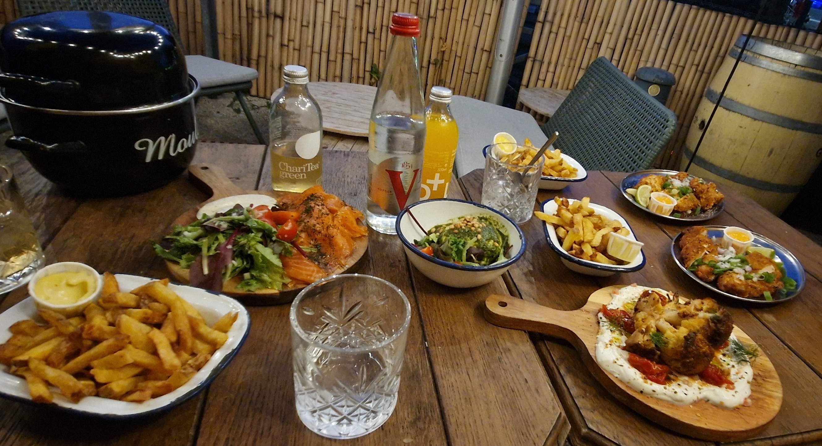 Dimanche soir : dépaysant/Agréable/bon accueil/bon service/jolie déco…. Un apéro dinatoire réussi au frais sur leur terrasse ventilée et climatisée. Service simple et convivial. Petites assiettes à partager et grignoter. Pas un grand choix dans la carte mais amplement suffisant pour l’apéro dinatoire. Nous reviendrons