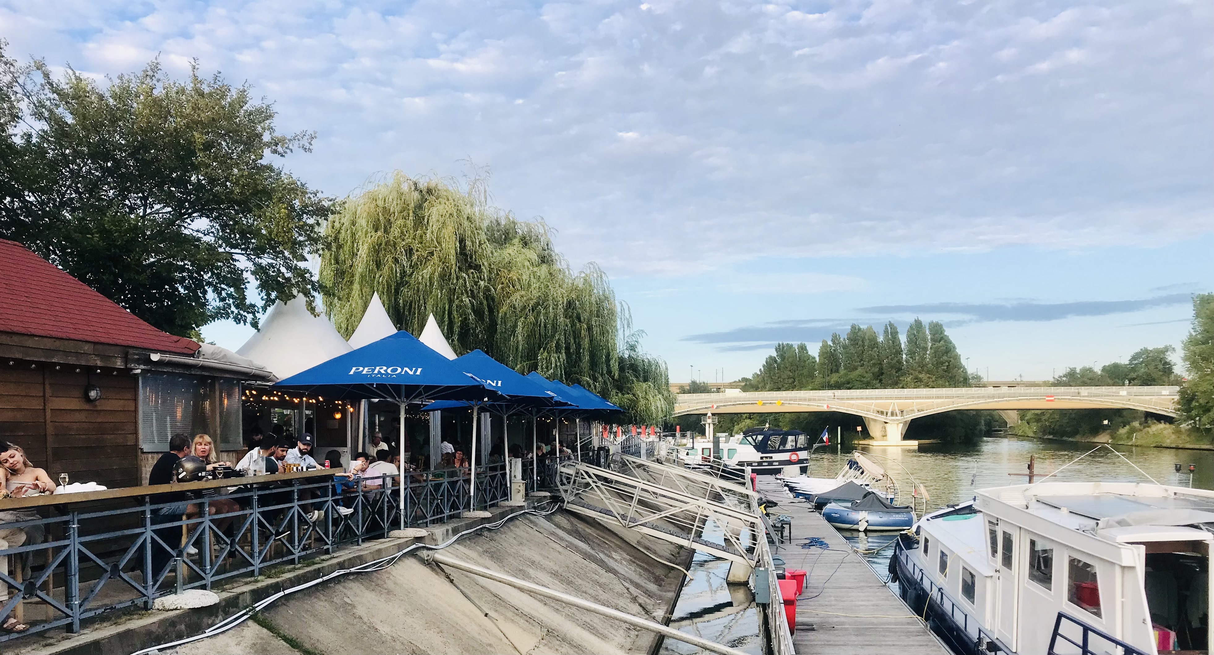Un plaisir de venir quand les beaux jours arrivent. Le lieux est dépaysant et agréable. Très bonne exposition au soleil face à la marne. Parfait pour un apéro dinatoire en couple ou entre amis.