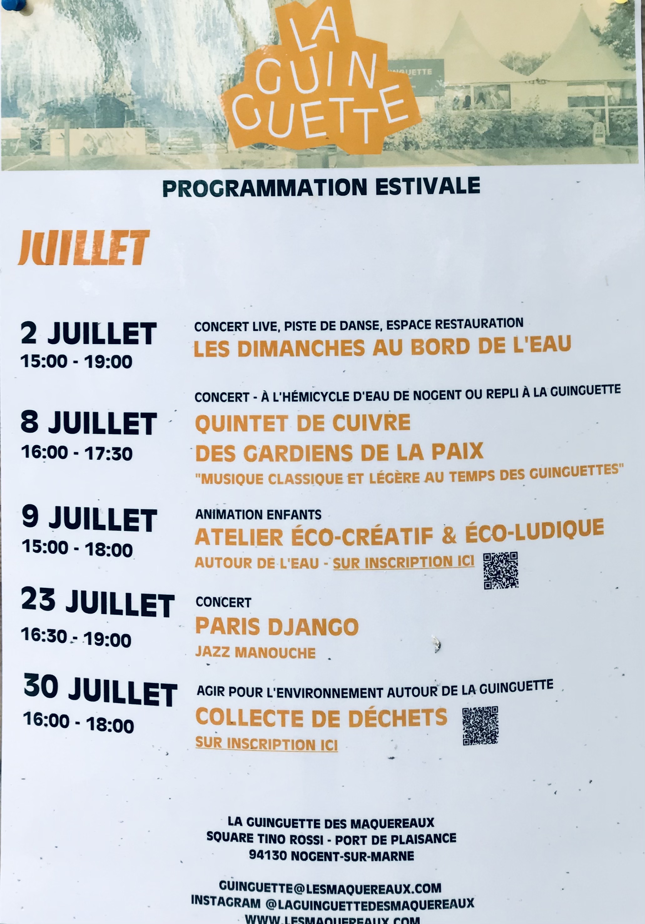 Voici toutes les informations sur le Restaurant La Guinguette des Maquereaux qui ce trouve au Square Tino Rossi, 94130 Nogent-sur-Marne (94). Sur cette fiche vous trouverez les photos, l'adresse, les horaires d'ouverture, le numero de téléphone et les avis clients.Vous pouvez églement rédiger un avis si vous le souhaitez en bas de page.