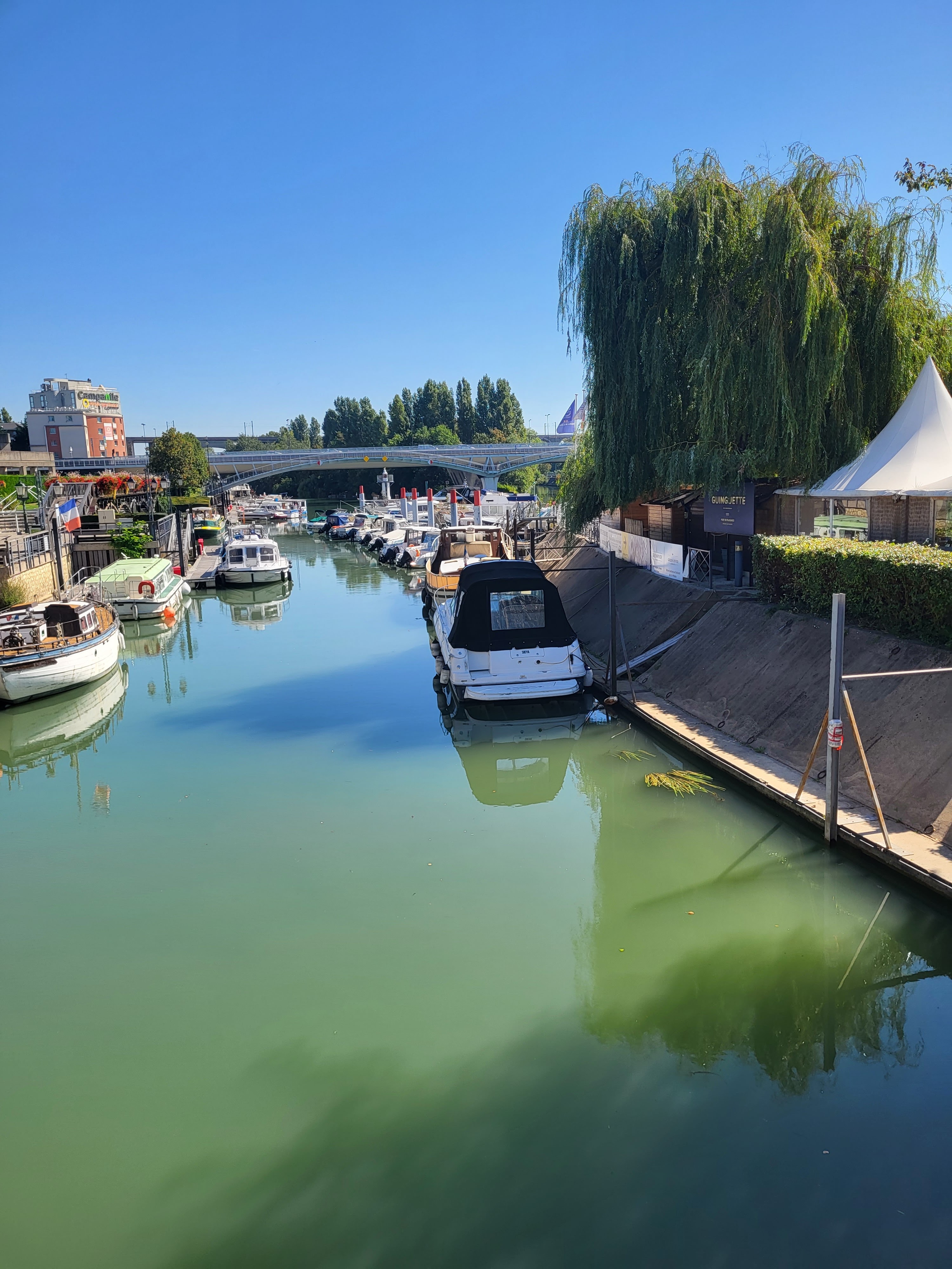 Endroit simple, sans prétention. Cuisine correcte. Le + : un service sympathique. Le - : nous avons été déçus par le cadre qui ne fait pas vraiment ambiance guinguette, et que l'on imaginait plus bucolique et dépaysant. Notamment pas top : derrière la marne, la vue sur les murs pare-bruit tagués de l'autoroute (on entend aussi pas mal le passage des voitures)