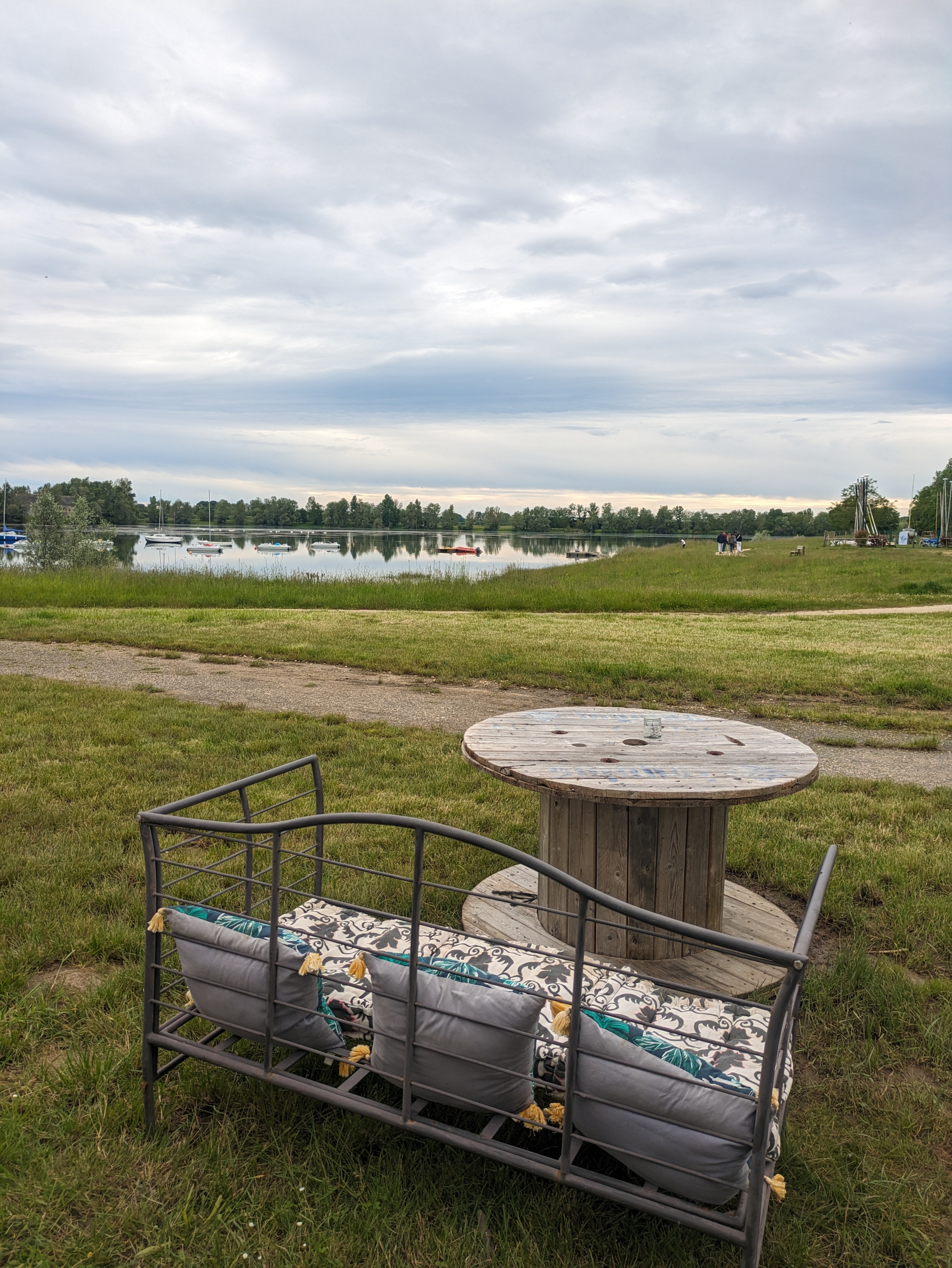 Belle surprise de prendre un rafraîchissement au bord de l'eau quand c'est la canicule (17 juin 2022). De plus il y a un fort potentiel pour des activités en tous genres. On reviendra.