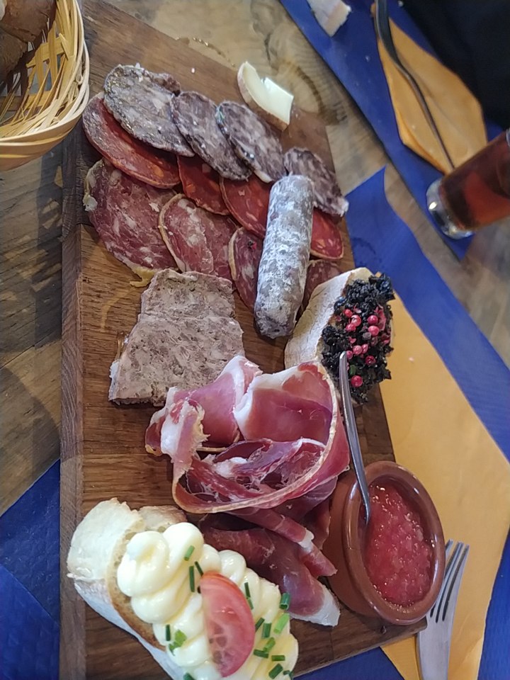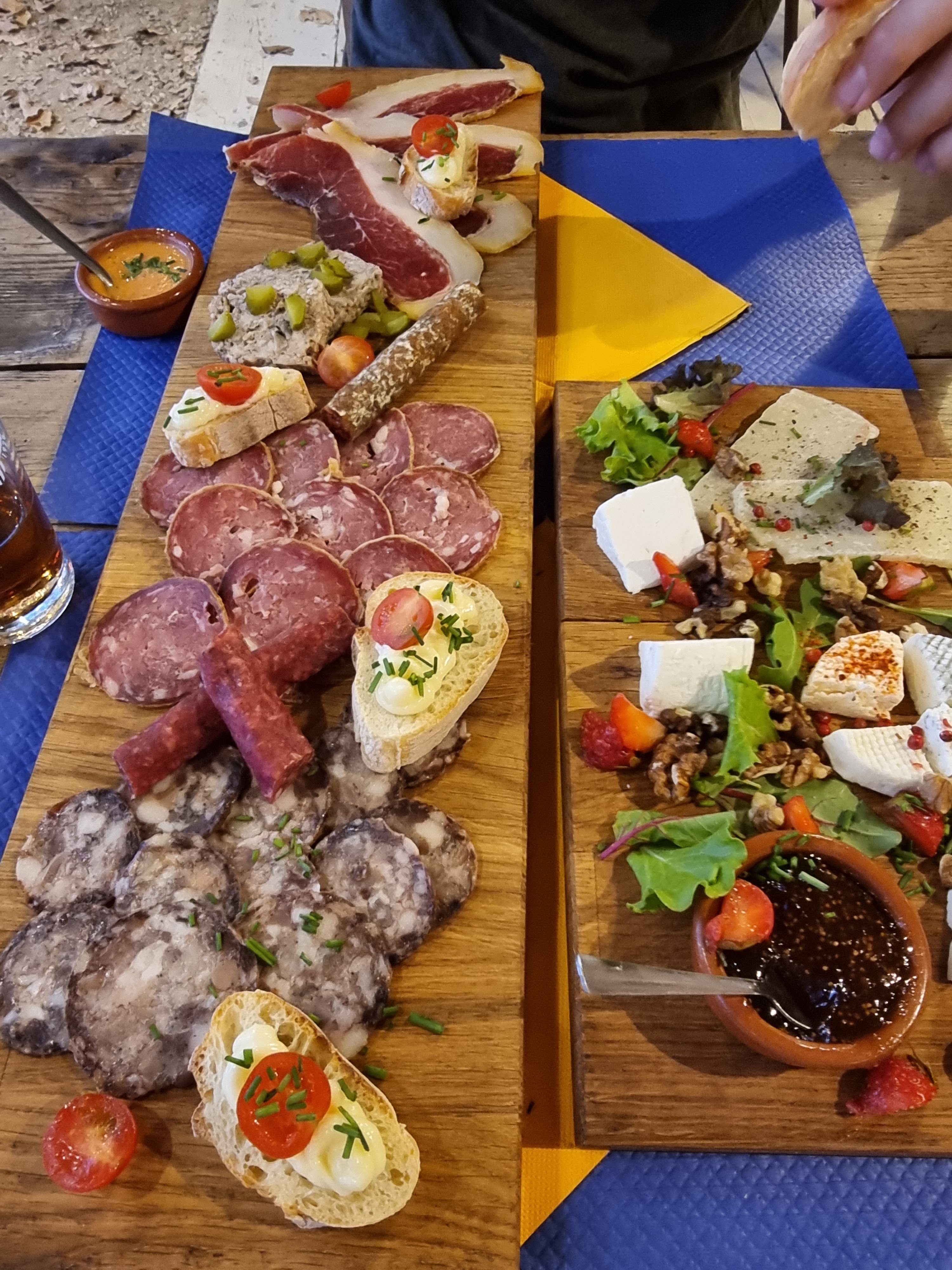Déjeuner un jour de pluie à deux mais le charme opère quand même. Un endroit atypique, simplicité et générosité sont les maîtres mots. Entrée planche mixte, aïoli avec du pain, c est déjà beau pour commencer et la suite le boudin Catalan et l assiette végétarienne 😱...ouf!!!! C est bon nous sommes arrivés au bout. Et bien-sûr le vin blanc qui va avec.....Bref un grand bravo à toute l équipe super sympathique et pour la vérité qui se trouve dans les assiettes.