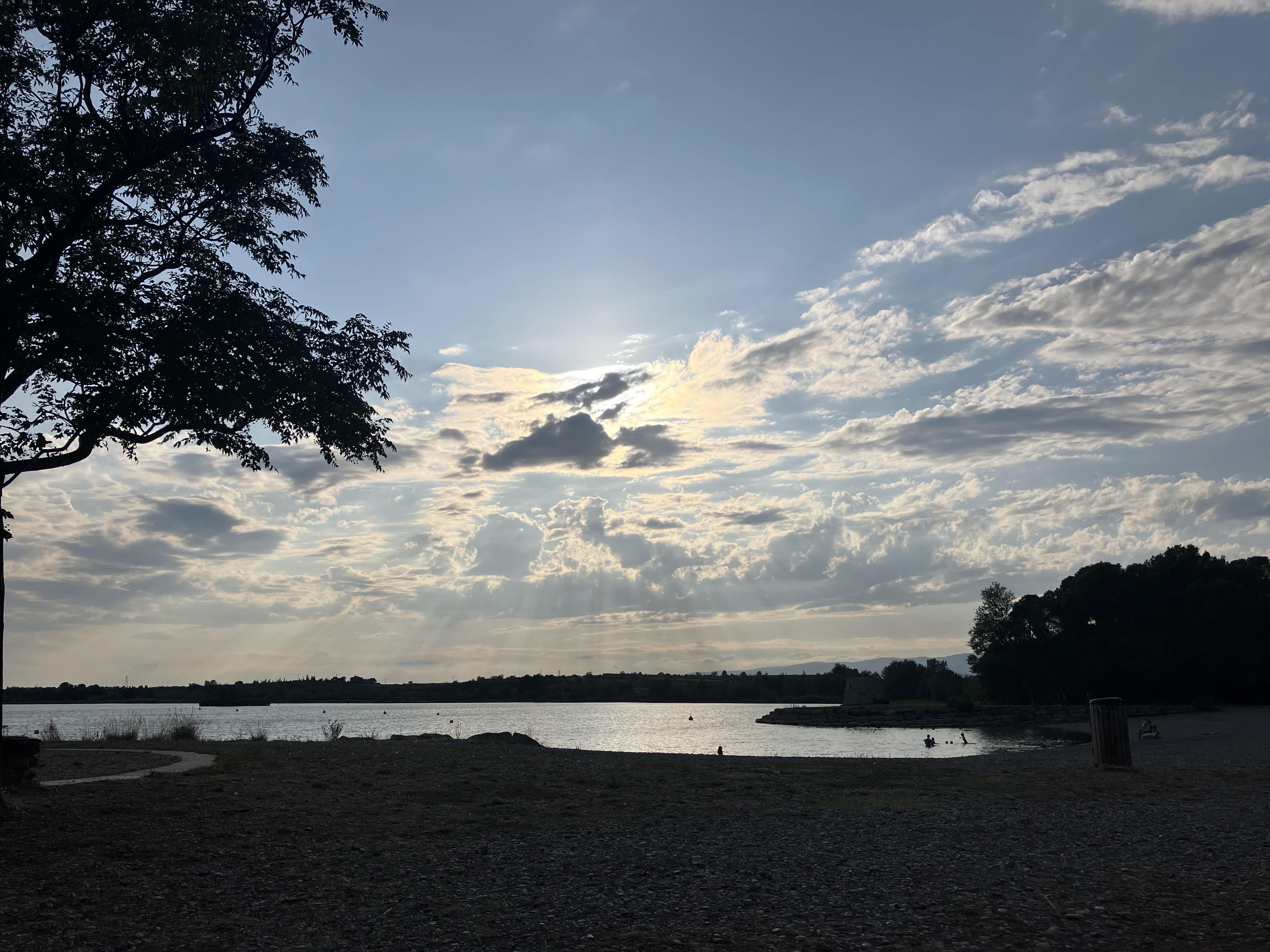 La vue sur le lac avec le soleil couchant était magnifique, on peut faire une grande promenade. Nous avons fêté la retraite d une amie ou ils nous ont servi un café gourmand ou tous étaient faits maison. Il y a aussi une plage et une base nautique. Très bel endroit