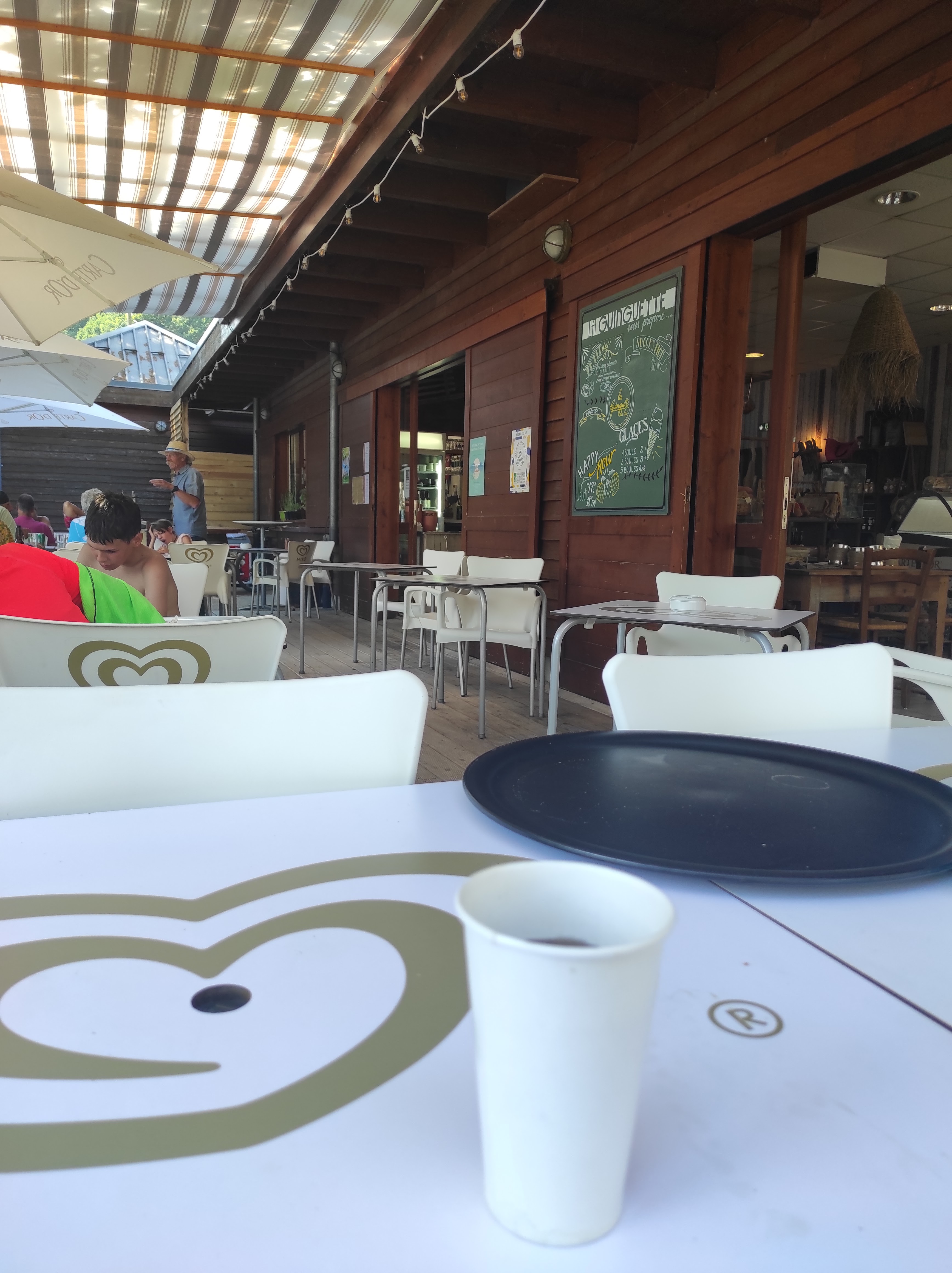 Nous avons atterris à la Guinguette grâce aux avis Google! De passage, c’est une adresse que je ne peux que recommander! Un soir de semaine la terrasse était calme et la vue sur le lac est un réel plus pour passer un bon moment! La serveuse était très agréable merci et bonne saison à l’équipe!
