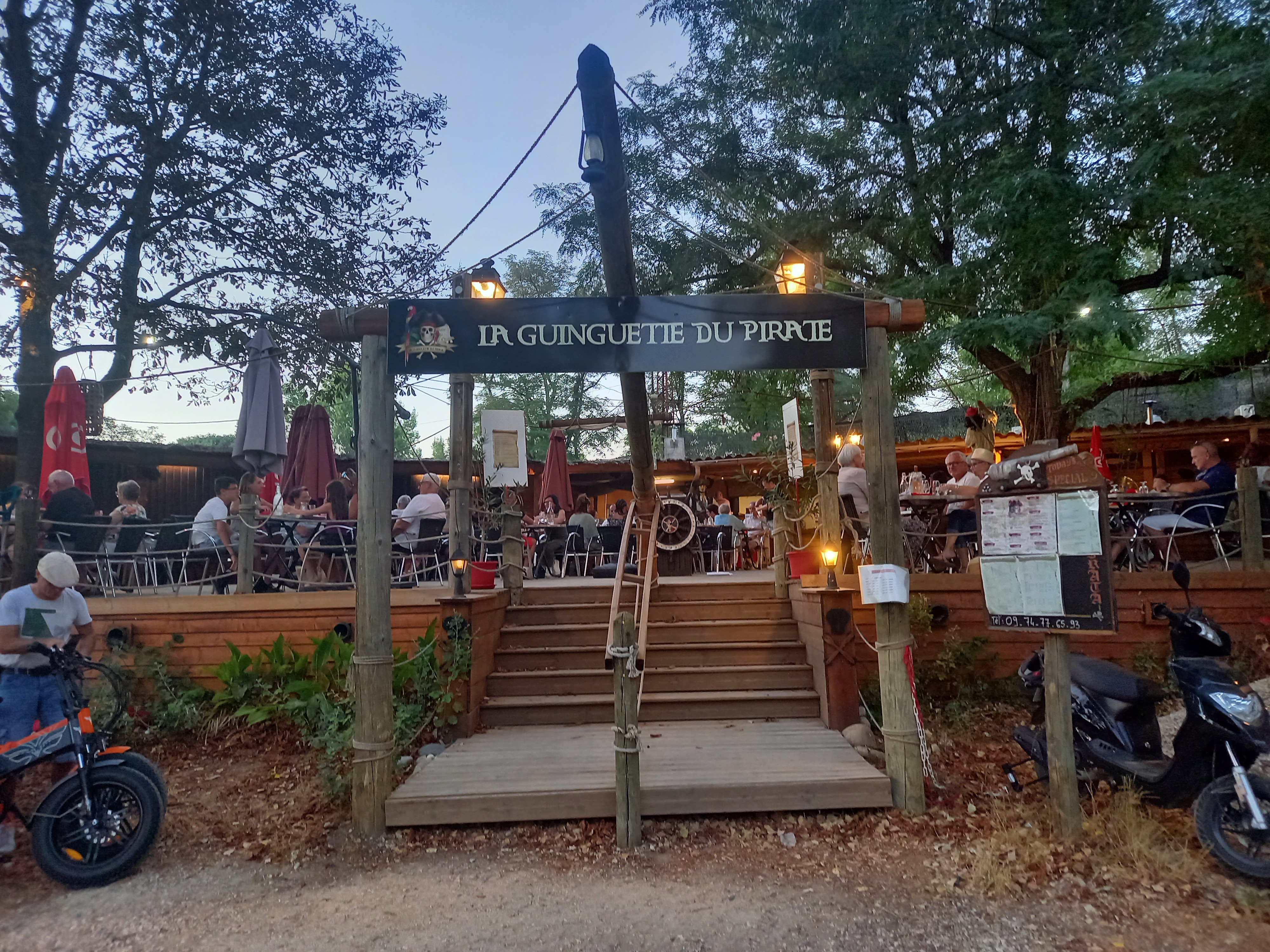 La Guinguette du Pirate à St Just d'Ardèche, un lieu magique... Tout cet hiver nous avons pu profiter de spectacles exceptionnels dans une salle très bien aménagée pour toutes les soirées. Avec une cuisine de qualité, un service impeccable même lorsque c'est complet tout roule impeccablement, avec le sourire et amabilité. Les gérants se démènent pour nous donner des soirées et des shows magnifiques. L'été nous retrouvons près de l'Ardèche dans un décor féerique de piraterie. Toujours avec un accueil qui nous dit vous êtes de la famille. Toute l'équipe est admirable par la gentillesse, le professionnalisme, le service, les menus pour tous les goûts. Il n'y a rien de pareil pour passer une soirée à 2, entre amis et surtout se vider la tête en faisant la fête à chaque soirée et journée programmées. Je recommande les yeux fermés. Bravo pour cette magnifique initiative. Merci à l'équipe des Pirates vous nous faites rêver et déconnecter le temps d'un déjeuner, d'une soirée ou simplement par votre bienveillance vraie envers tous ceux qui sont présents dans votre guinguette. Mille mercis et continuer ainsi avec votre envie de partager des moments simples conviviaux, des shows et spectacles merveilleux. À très bientôt. Venez visiter cet endroit qui vous ravira à n'importe quel moment. Félicitations 👌💖🎊👍💝😘