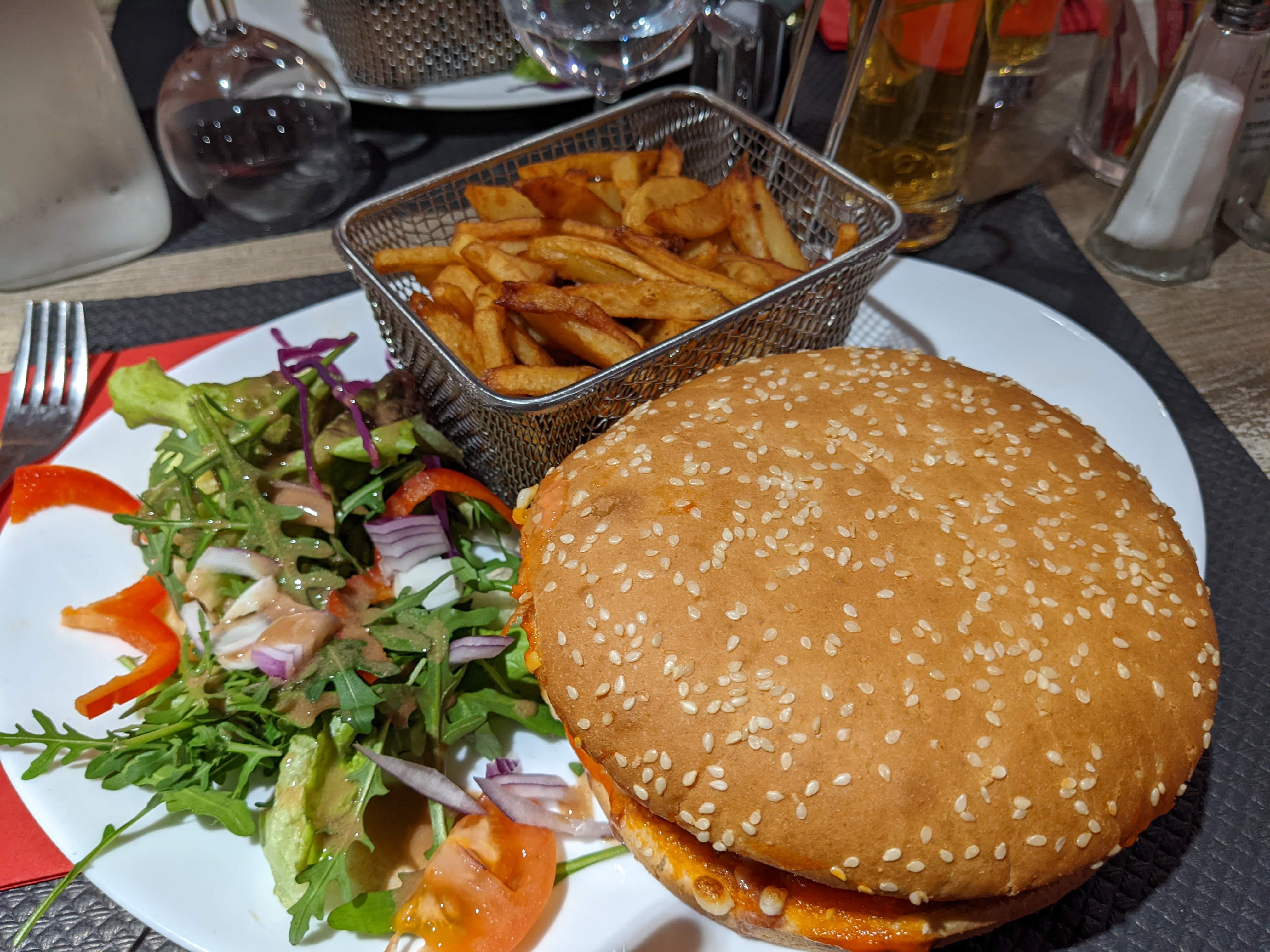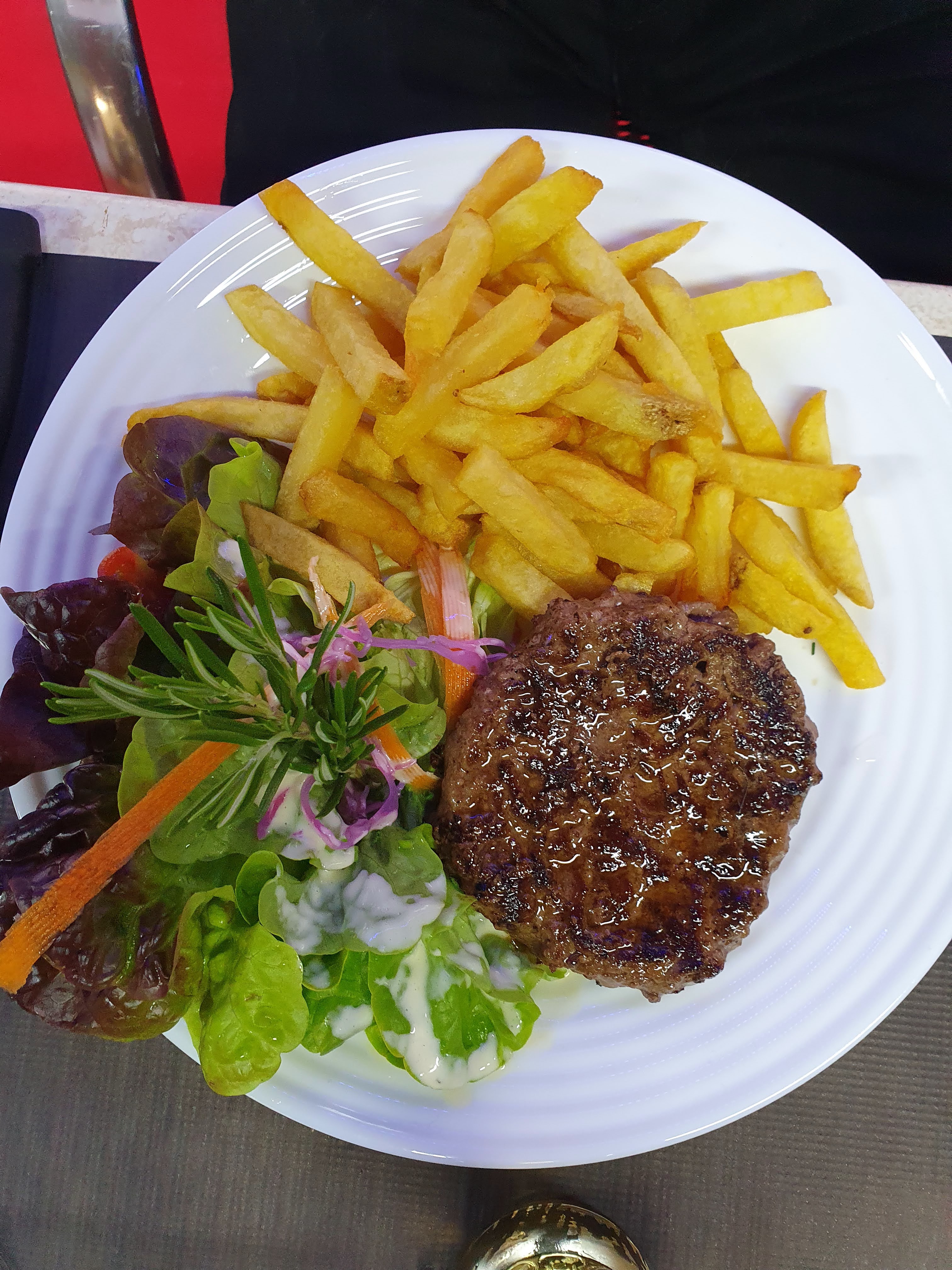 Hamburger délicieux, frites maison, pizza très bonne. Service rapide et efficace, tout en étant sympathique. Le soir de notre visite, il y avait un concert, mais pas trop fort, ce qui permet encore de discuter entre nous. Nos enfants ont reçu des crayons de couleur dès notre arrivée, même si au final c’est plutôt la jolie place de jeu qui les a occupés. De passage dans la région sur la route du retour des vacances, on a vraiment pu profiter de notre dernière soirée!