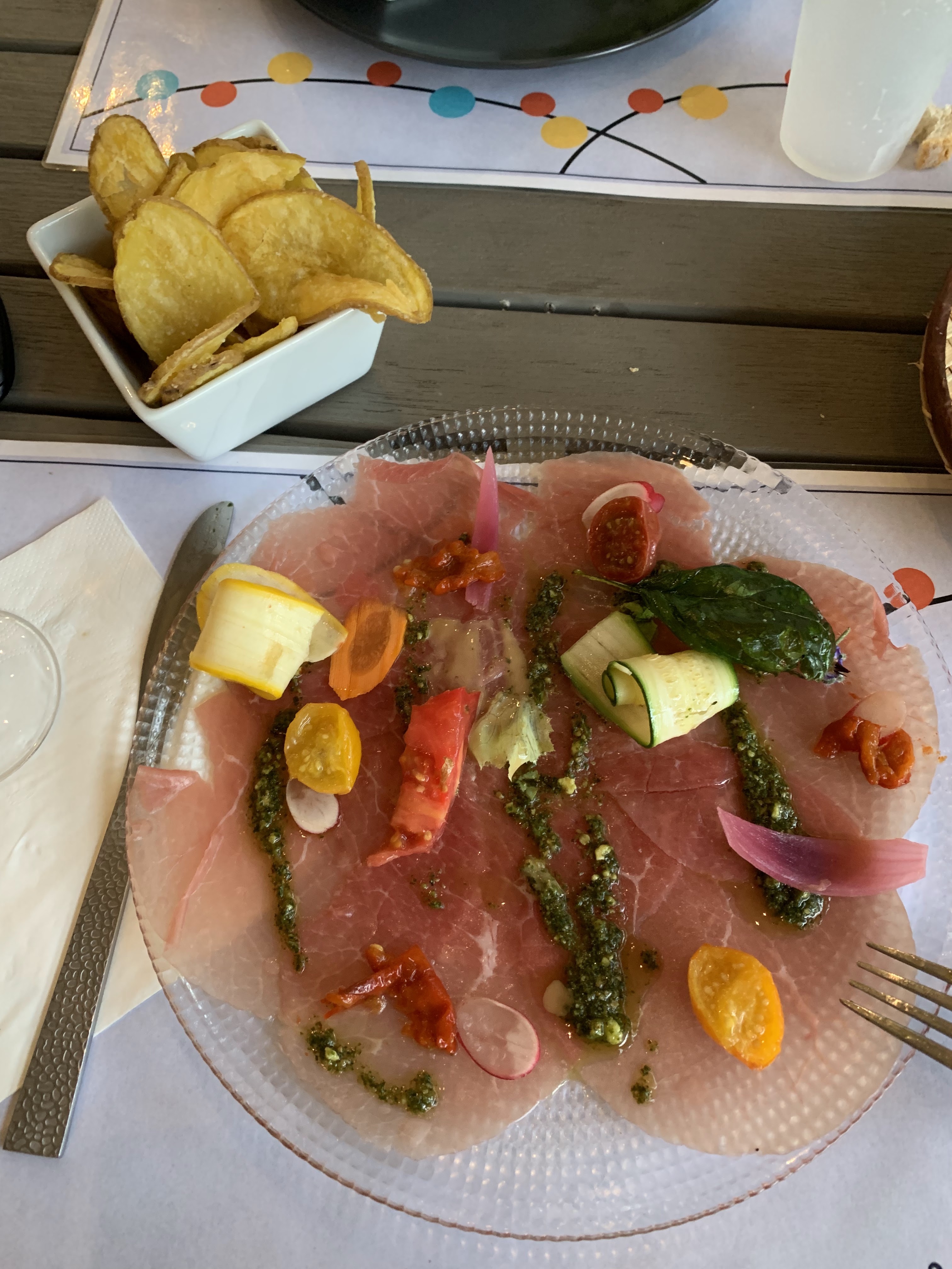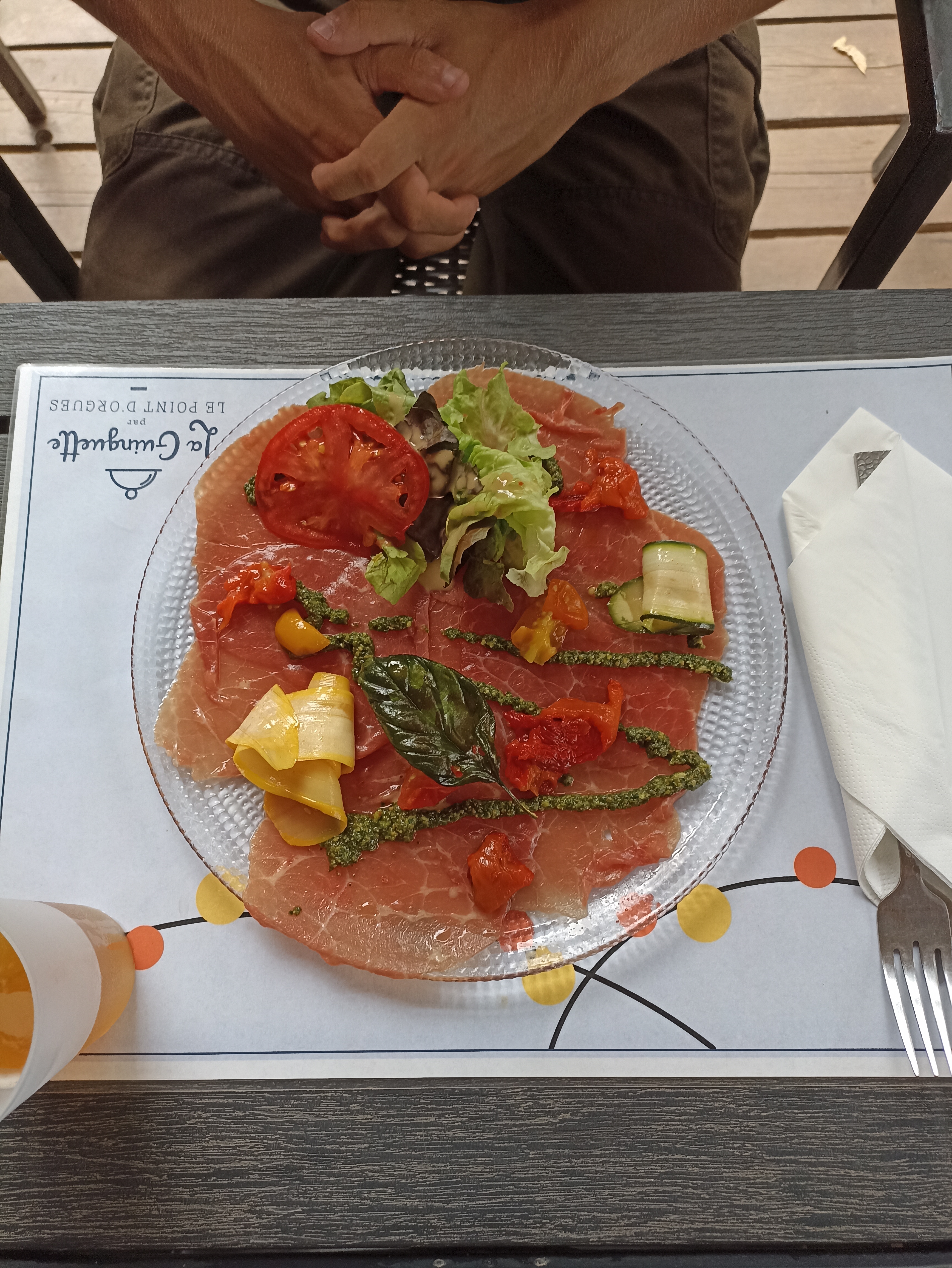 Nous avons dîné dans cette jolie tente proche de notre camping. La nourriture était délicieuse, le service était excellent et avec notre mauvais français, nous aurions pu commander assez rapidement.