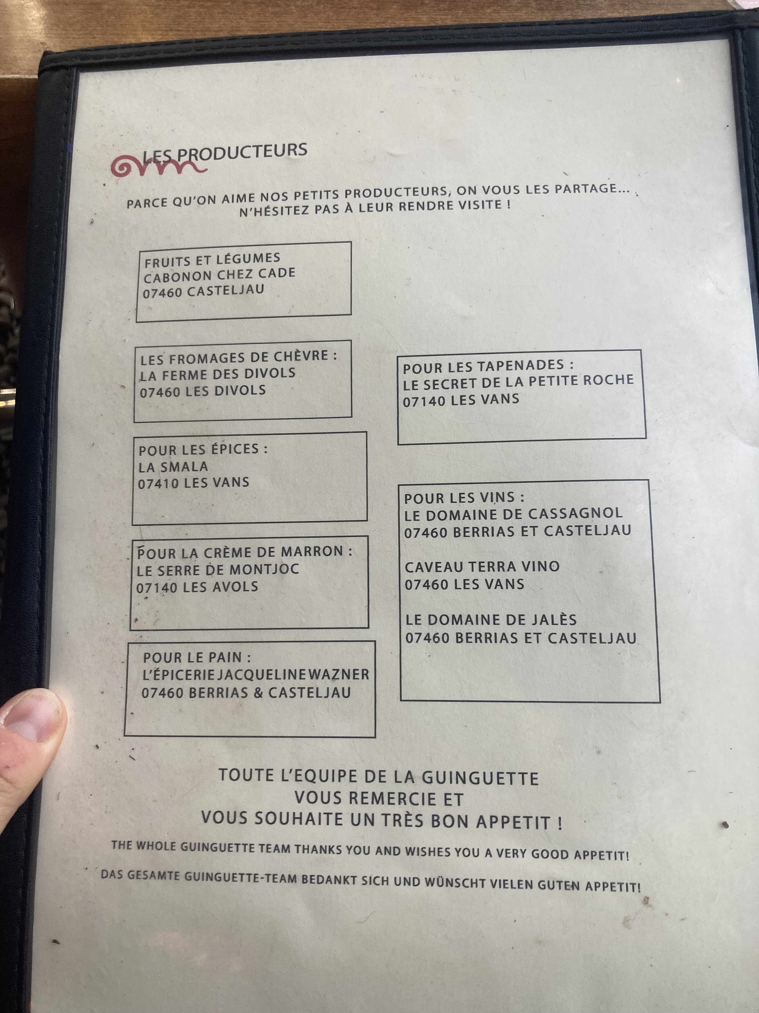 Personnel super sympathique, bonne cuisine ardéchienne et prix raisonnables. Même s'il pleuvait, le personnel nous a immédiatement aidés à nous amener, nous et nos aliments, dans un endroit sec. Tapas et Tartare d'exception ! La salade de fromage est un repas complet, je vous recommande de la partager avec une autre personne. Si jamais je reviens dans la région, je reviendrai certainement chez vous ! 10/10