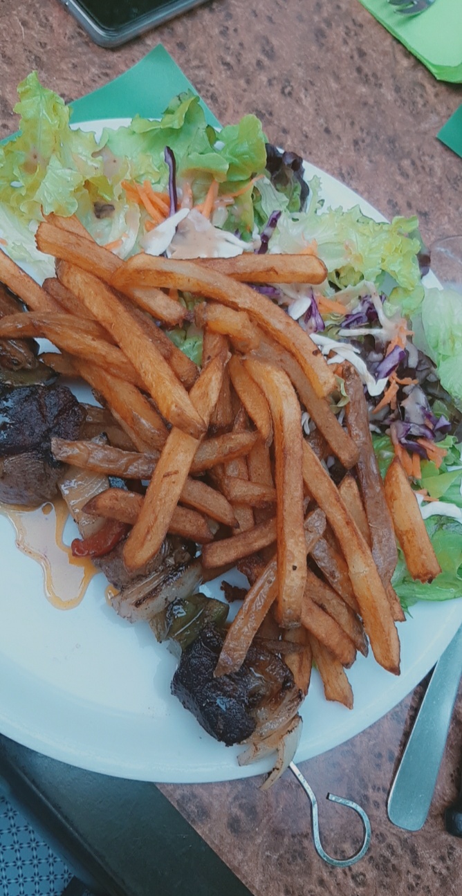 Première sortie depuis des mois, soirée Repas karaoké, L' animation karaoké très bien mais Grande déception sur le plat à 16,50e hors boissons et café ! Très cher payé pour une poignée de salade (sachet) 1 chipo 1 merguez 2 bouts de boeuf qui se battent sur une brochettes et 2 morceaux d'aile de poulet même pas l'aile complète et une poignée de frites qui sentaient plus la réchauffe qu'autre chose.. Piège à touristes? On ne le refera pas ,on viendra juste boire un coup pour le cadre sympa. 0 pour le plat !