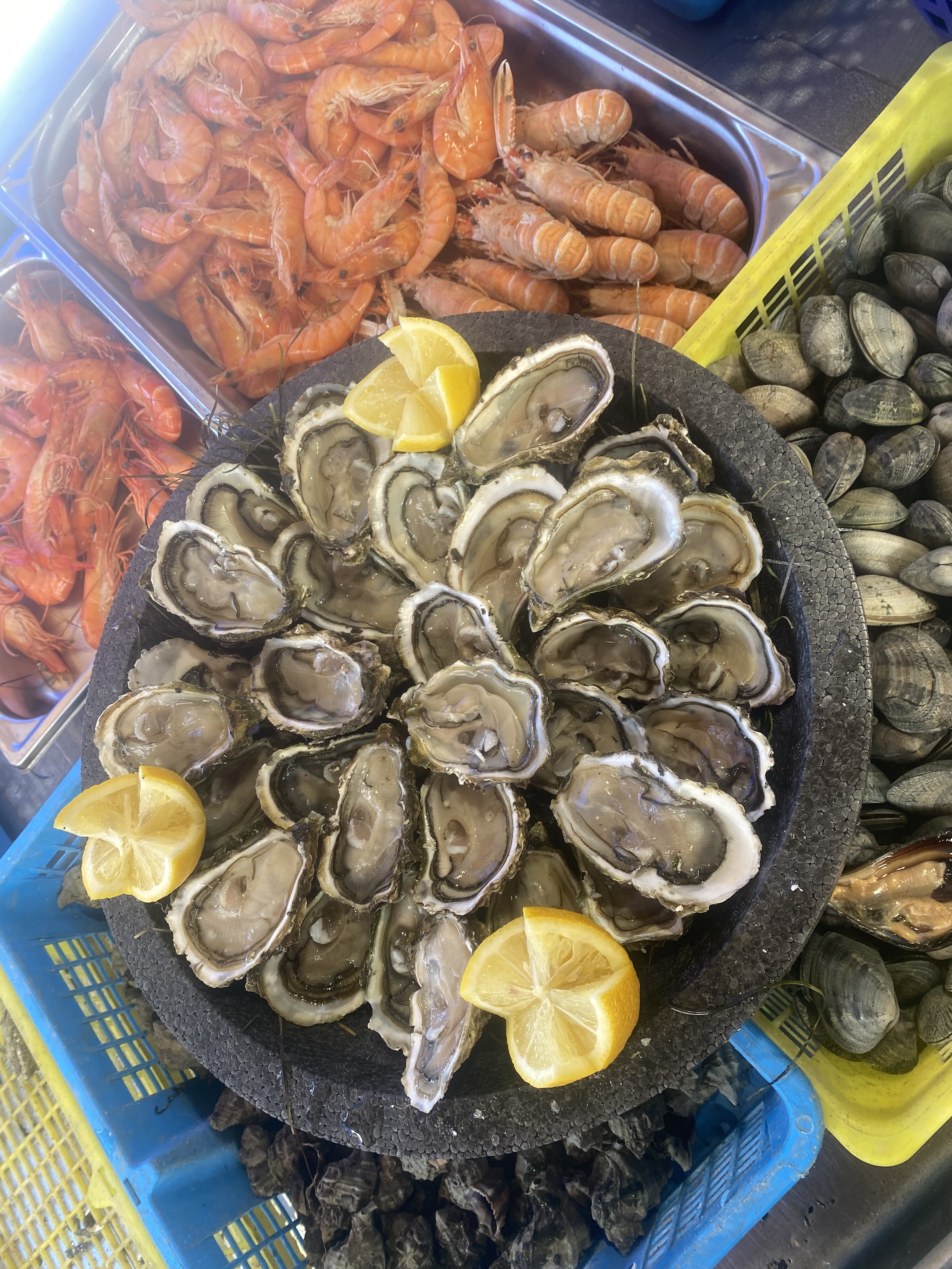 Huitres et moule au top attention ne prennent pas la CB mais un distributeur de trouve juste à côté