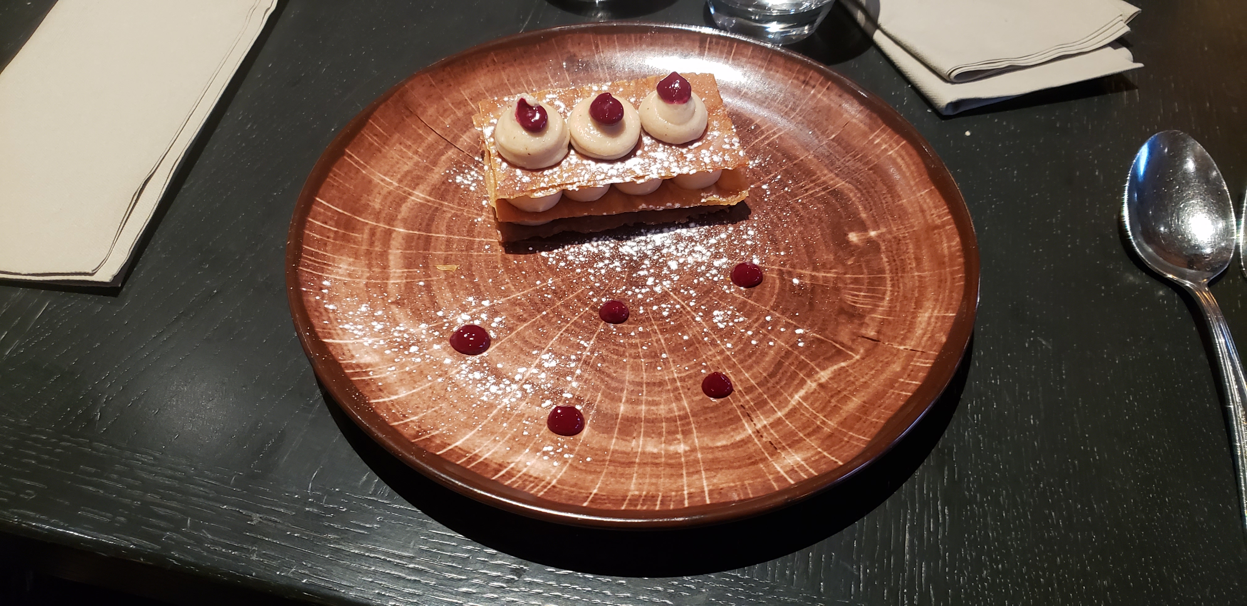 Nous avons dîné ici deux fois pendant notre séjour ici à Strasbourg. Expérience agréable, la nourriture est bonne. Le risotto était malheureusement cru (croquant et non aldente) les cuisses de grenouilles étaient parfumées mais sans goût, le ragoût de bœuf est plutôt salé, il manquait une partie à l'entrée dégustation asiatique etc... Le meilleur était le parfait aux œufs (désolé, photo non incluse).