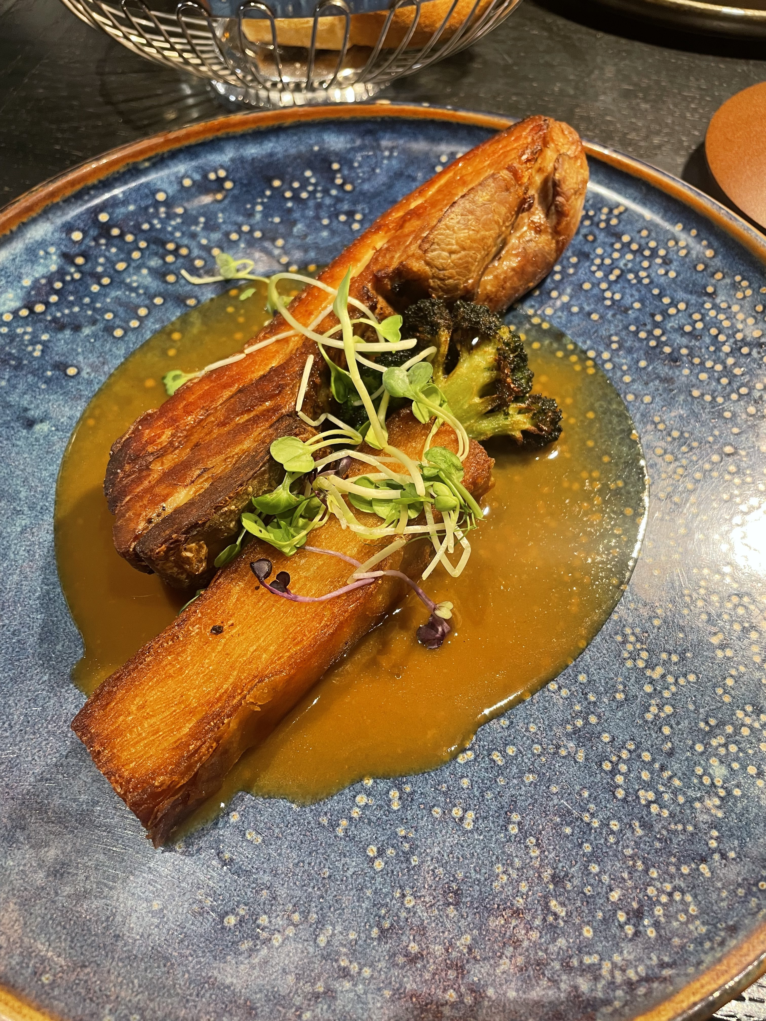 Le restaurant est tout simplement charmant. Chaque plat nous a mis l'eau à la bouche, notamment la poitrine de porc aux pommes de terre ! Le personnel est très professionnel et attentif. Nous avons demandé au personnel de nous aider à surprendre notre sœur Amour pour son anniversaire. Ils ont servi la glace avec une bougie et ont éteint la lumière au-dessus de notre table. Cela l'a rendue souriante et heureuse.