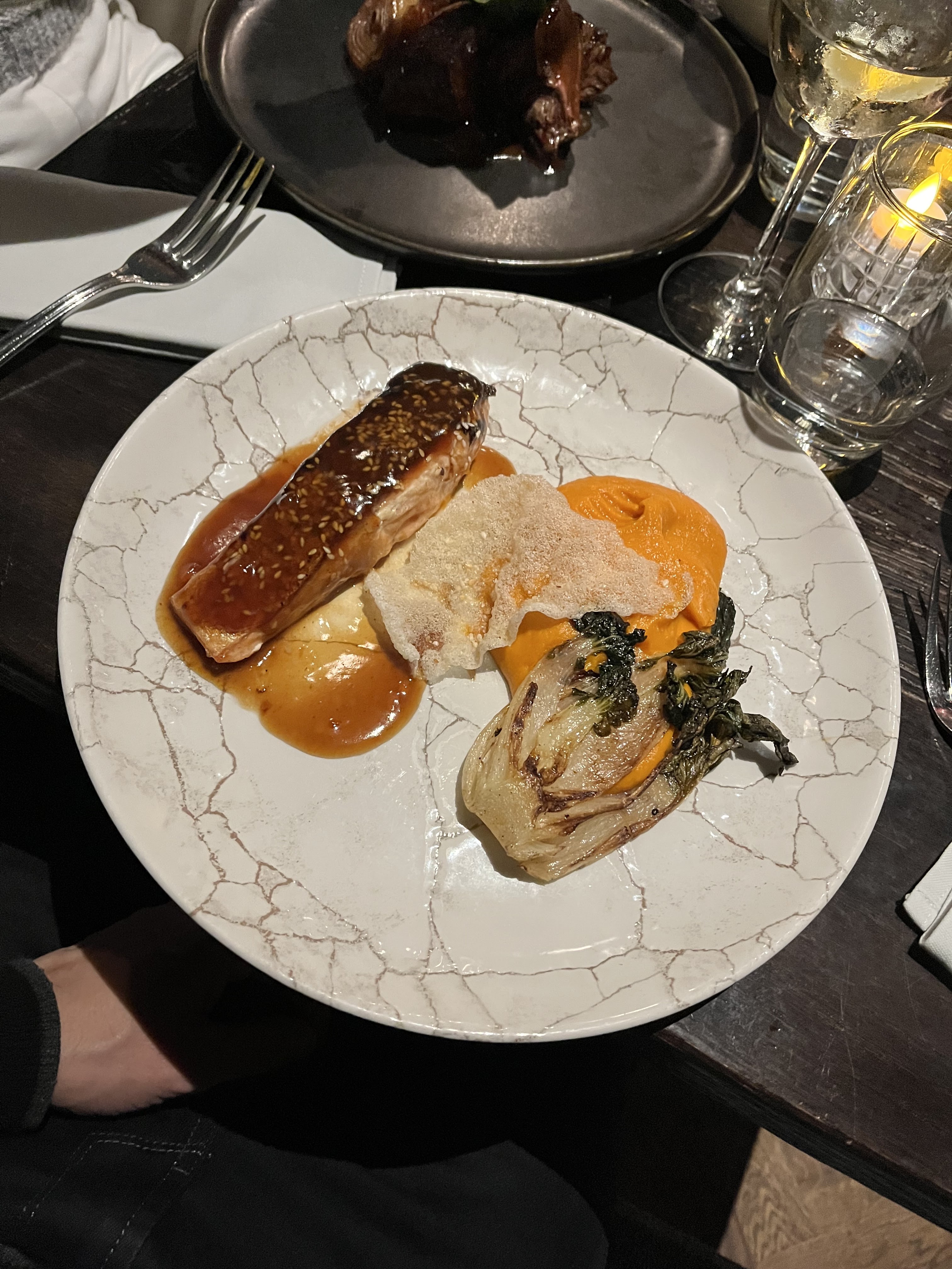 Le plat était bon. Trop peu à mon goût dans l'assiette. Jen suis sorti avec la faim au ventre par rapport à un prix excessif. Contrairement à des expériences chez d'autres restaurants où pour 25€ j'avais un filet de magret de canard entier avec des légumes de saison. Je ne renouvellerai pas l'expérience même Do le cadre et le service étaient agréables.