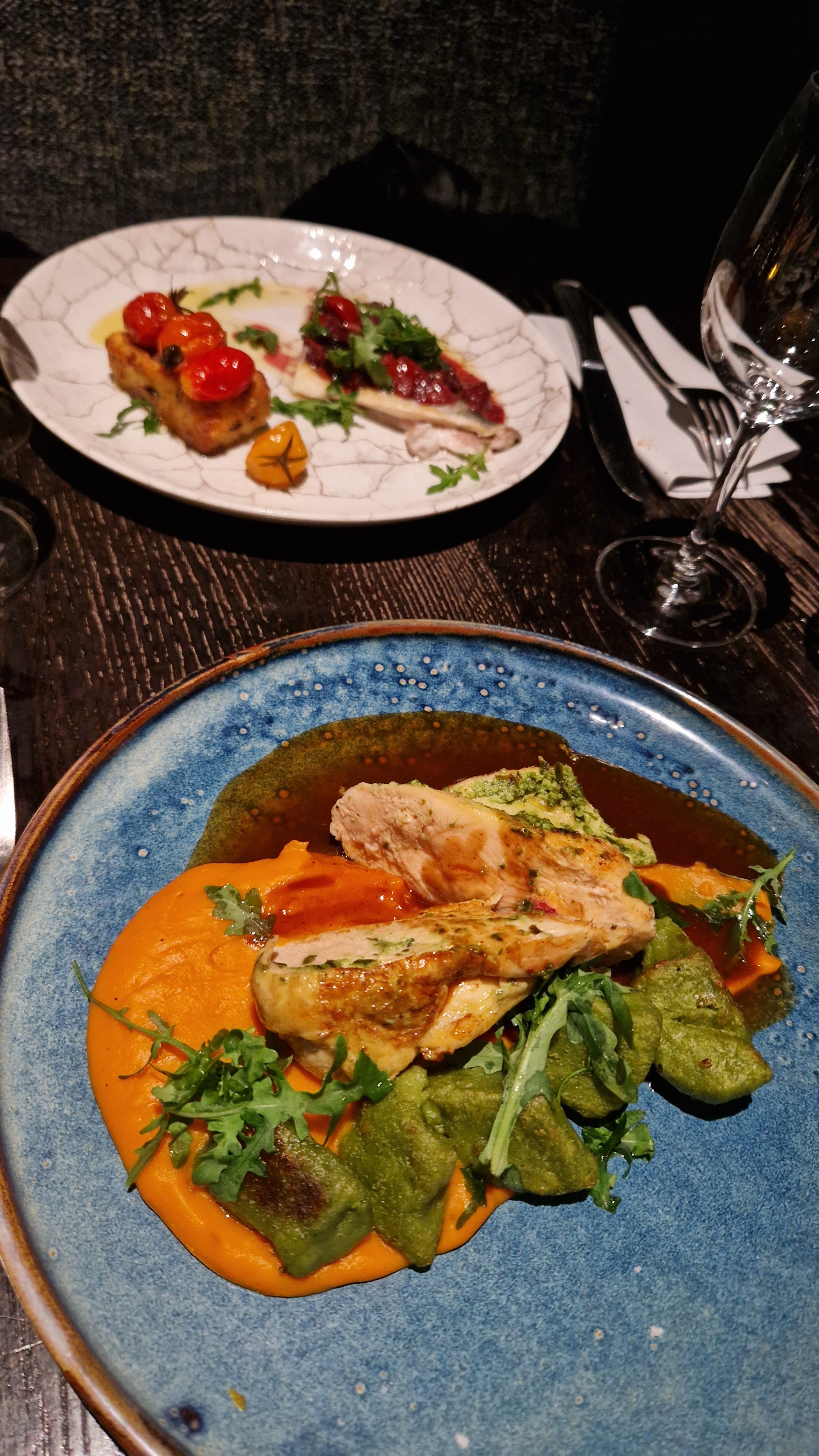 Excellente cuisine La volaille une tuerie servi avec des petits légumes et une sauce incroyable Par contre beaucoup trop serré a table Ambiance déco pas extraordinaire