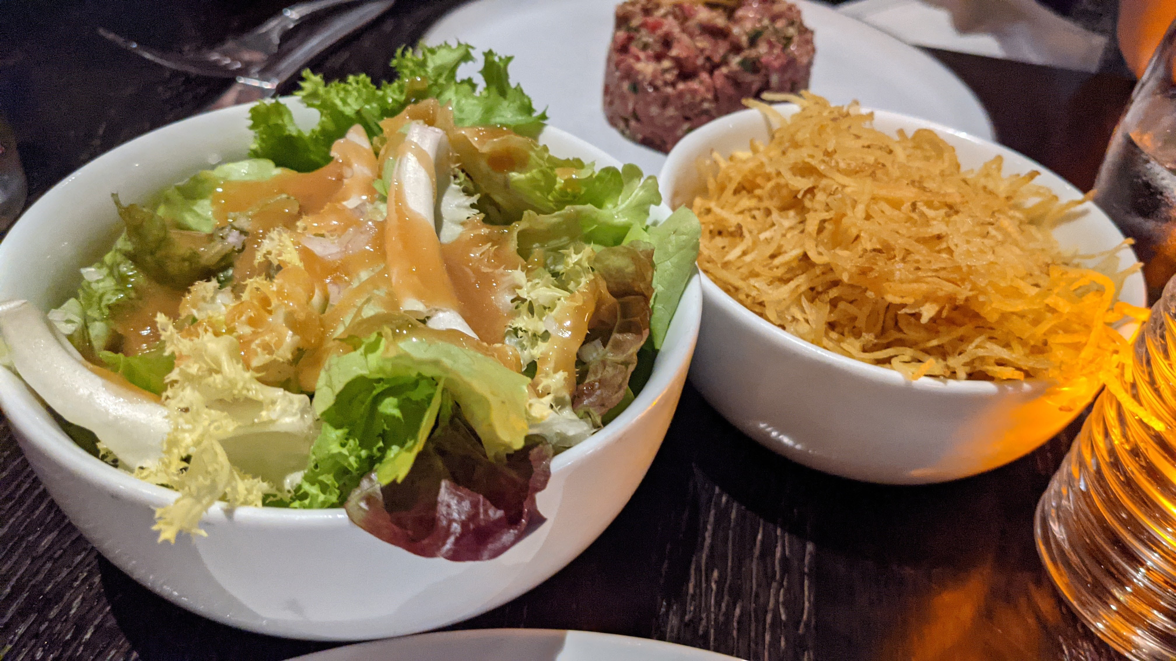 Très cher pour la quantité dans l'assiette. Viande et accompagnements très bons mais même après avoir redemandé des frites (un minuscule bol alors qu'on a en a rendu deux), c'est vraiment insuffisant. Assez bruyant par ailleurs. Service sans plus, un peu rigide et parfois l'impression de déranger.