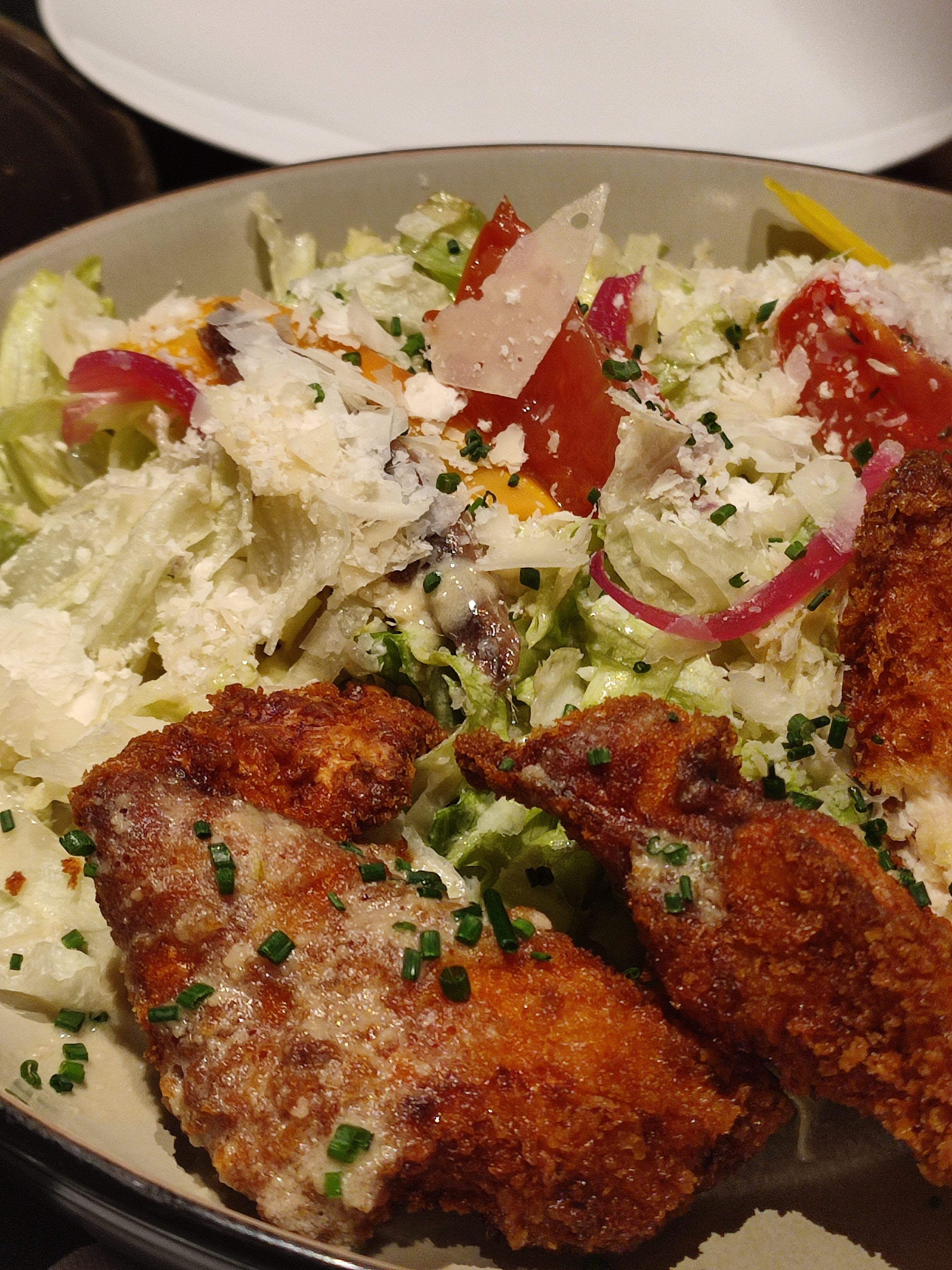 J'ai mangé d'horribles fish and chips, que je n'ai malheureusement pas photographiés. C'était très gras et les chips étaient presque brûlées. D'un autre côté, l'apéritif était très bon et la spécialité de poulet était également très savoureuse.