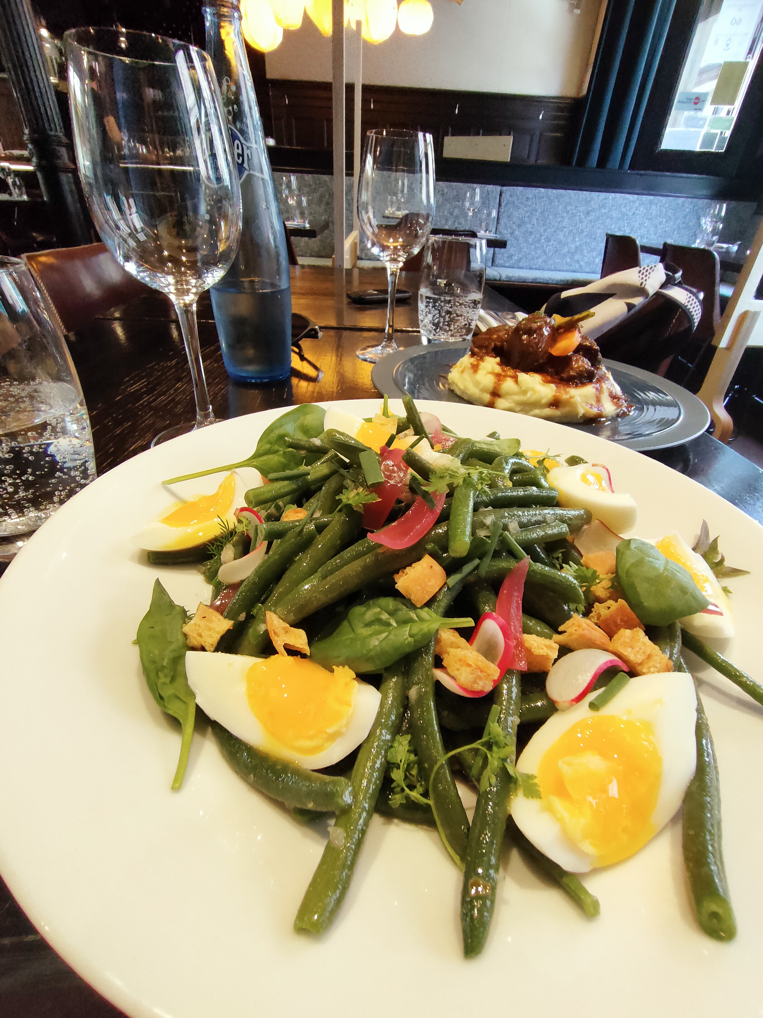 L’endroit est décoré avec goût: simple et élégant. Les serveurs et serveuses ont été aux petits soins toute la soirée et le repas était excellent (bravo aux cuisiniers) ! D’habitude les restaurants traditionnels font peu d’effort sur les options végétariennes, ce n’est pas le cas ici. C’était un régal ! Très bonne découverte :)