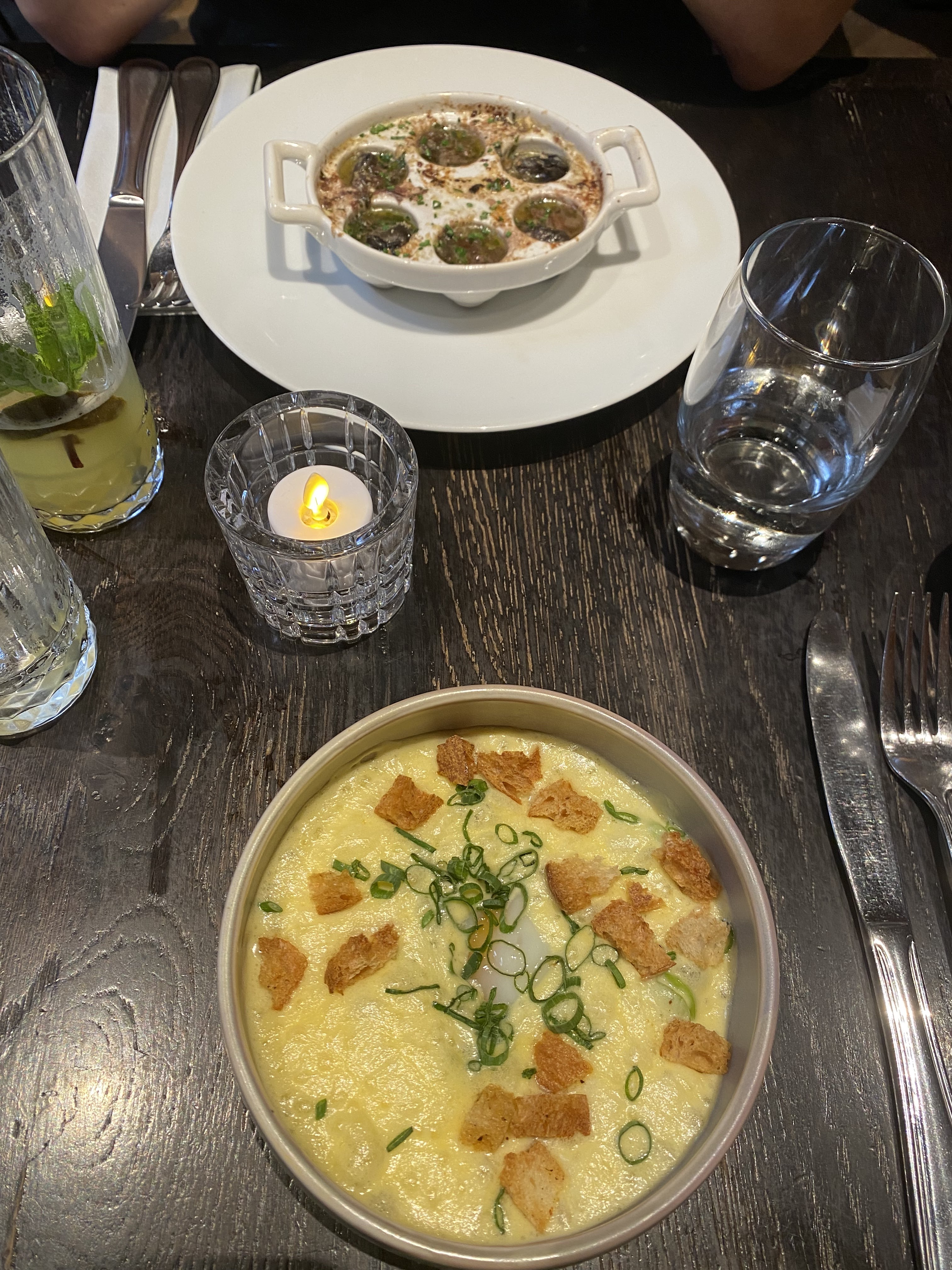 Œufs de grenouille, escargots, os de mauve… tout ce que je ne mange pas habituellement en Allemagne. Je me sens définitivement exotique et super savoureux même si c’est la première fois que j’essaye ces cuisines. Le service est au top, super sympa. Nous ne savons pas si les gens prennent des pourboires en France donc j'agis un peu maladroitement en payant l'addition, mais au final, je n'ai pas payé, j'espère que notre serveuse ne sera pas déçue. Nous sommes encore en train d'apprendre la nouvelle culture. 🥲 Nous avons passé un bon moment et l'une des meilleures expériences culinaires de ces derniers mois.