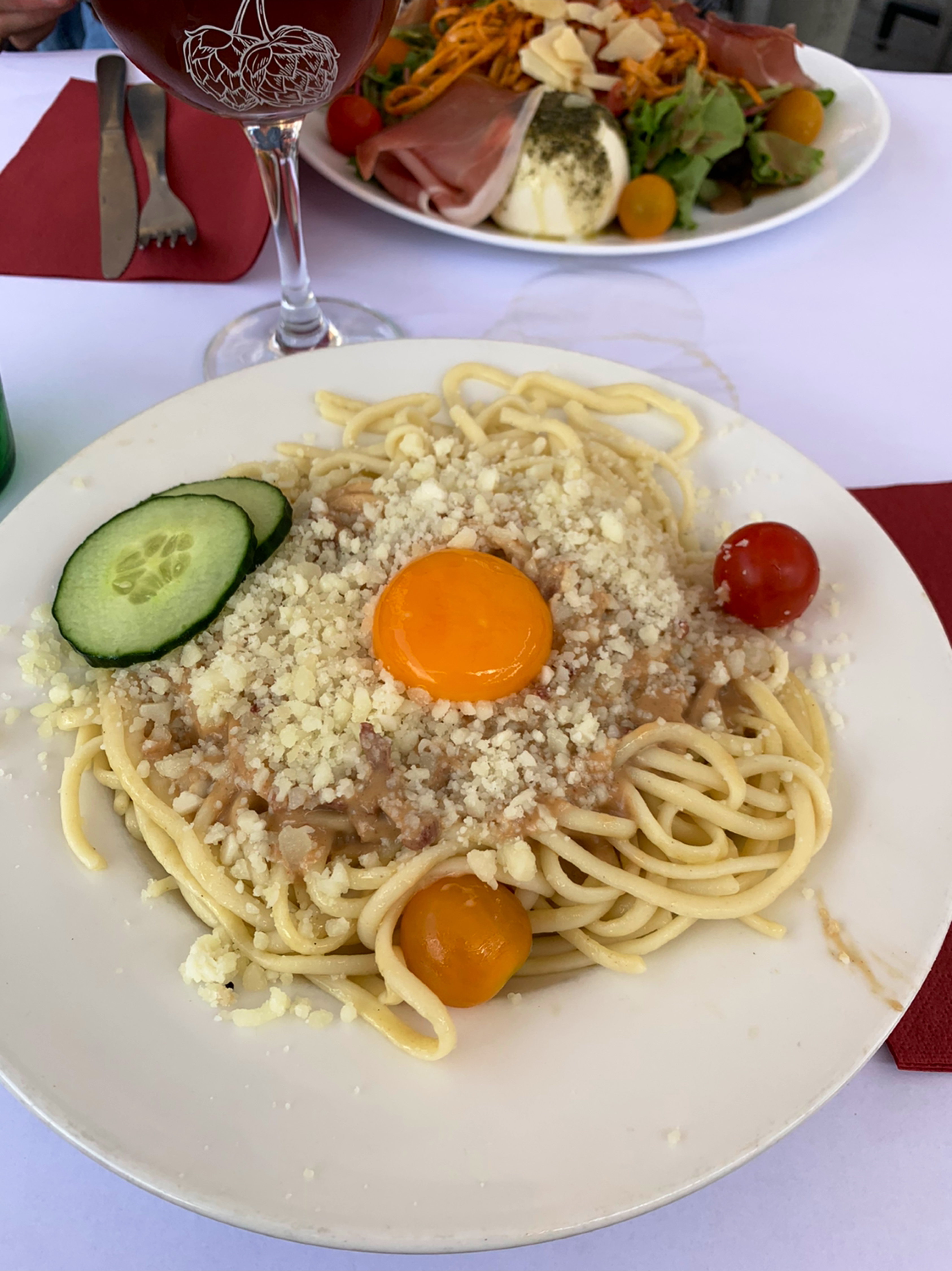 Restaurant sur la place très agréable. Le service est bon et l’attente n’est pas trop longue. Nous avons pris les pâtes à la carbonara, et une salade composée. Les deux plats étaient consistants et bien assaisonnés. Nous avons terminé le repas avec un café et trois boules de glace: citron vert, framboise et vanille. Nous avons passé un bon repas en terrasse 👍