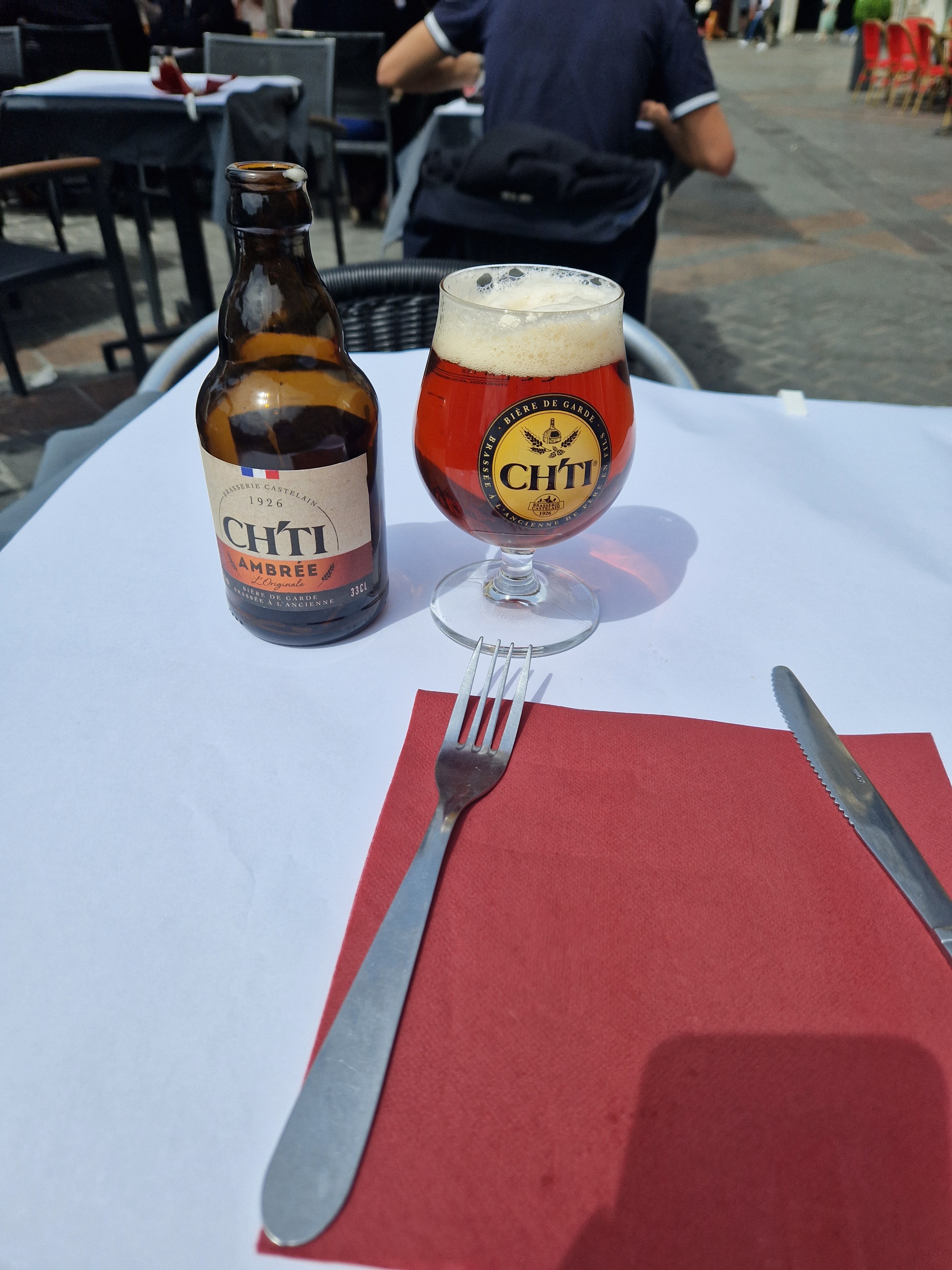 En terrasse sous le soleil ce midi, plat du jour excellent, l’accueil très sympathique. Merci la houblonnière pour cette belle pose déjeuner!