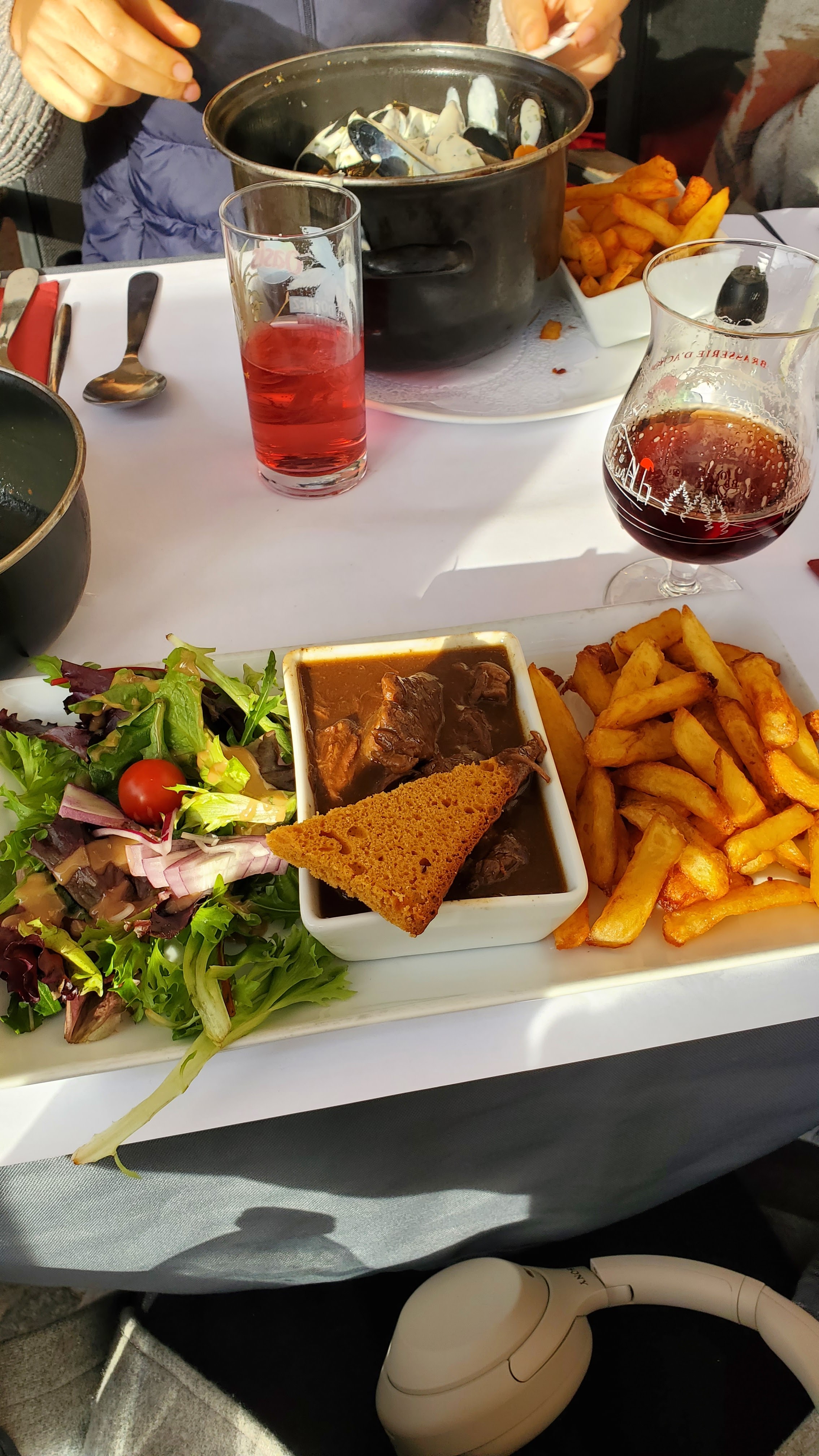 Nous avons optés pour des moules au maroille qui étaient bonnes et bien nettoyées, les frites pas top mais bon contentes dans l'ensemble. Les serveurs sont gentils 😉