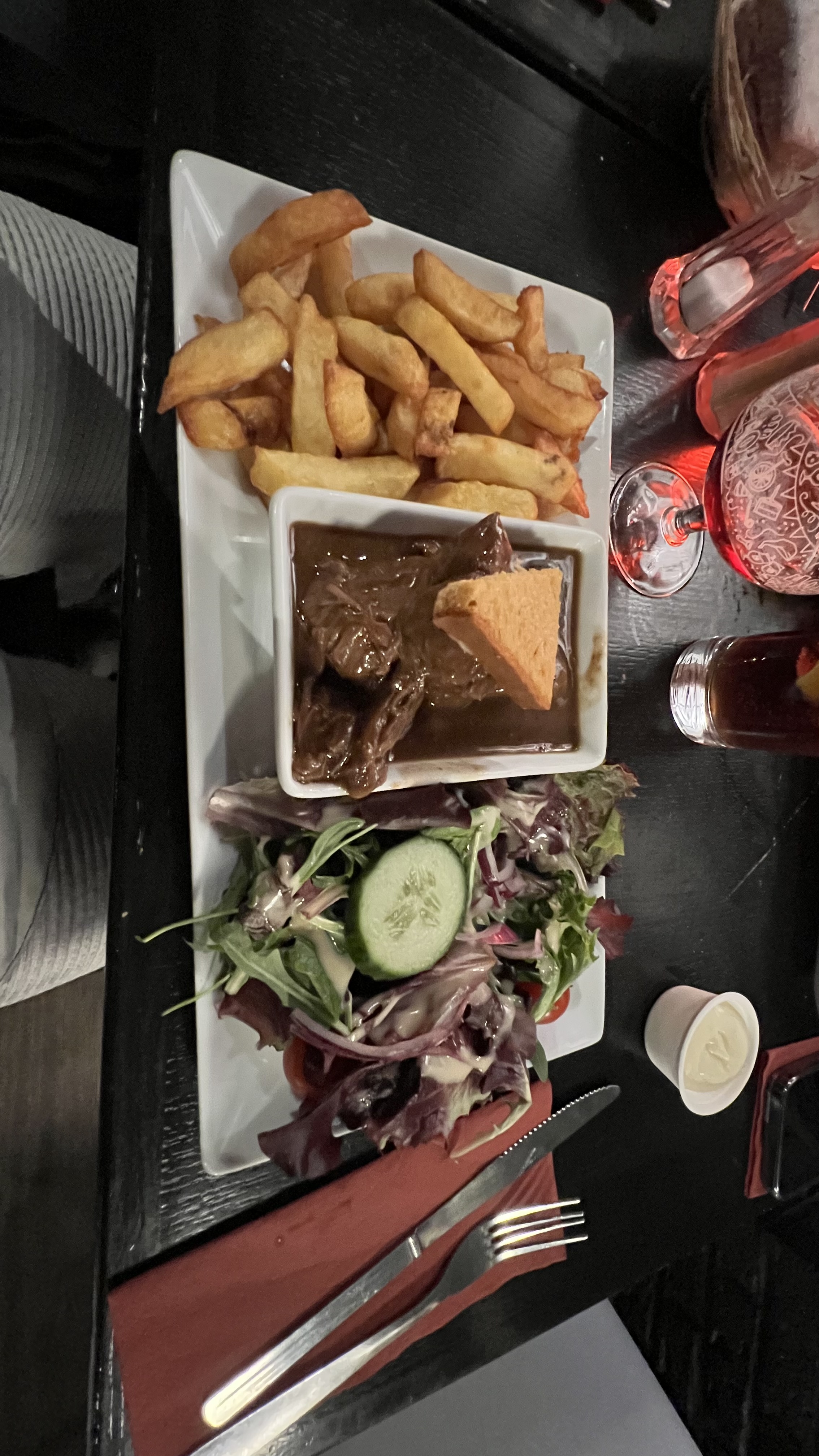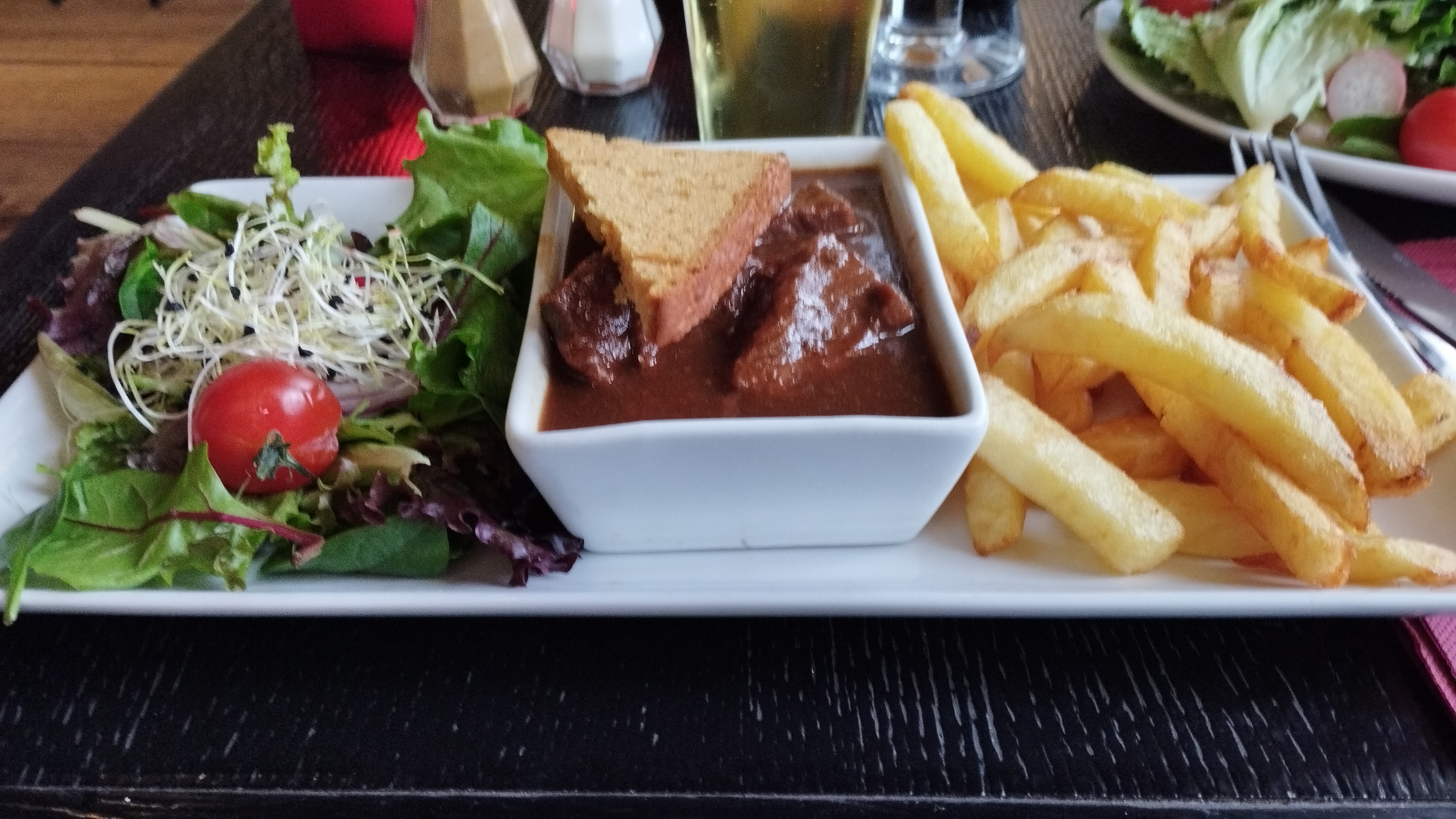Rien de spécial, nous voulions goûter les spécialités Lilloise à travers ce plat...ça n'a pas été une réussite. La viande n'était pas tellement bonne et la présentation ne donnait pas envie.