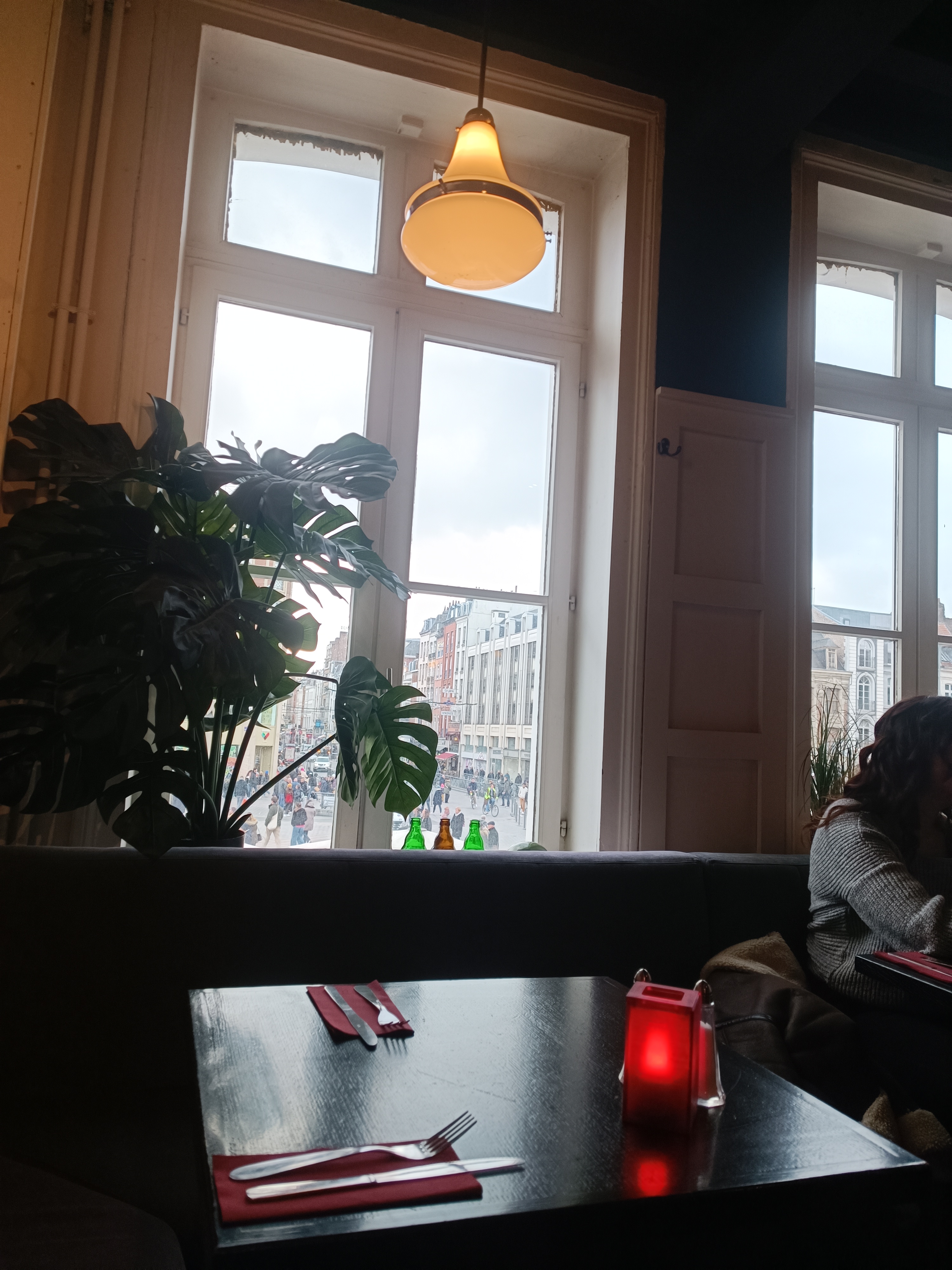 Sur la place charles de Gaule, place centrale de Lille avec une vue sympathique, le service impeccable et la nourriture très correcte, par contre absolument à goûter la spécialité locale welsh complet… trop bon mais attention les calories lol