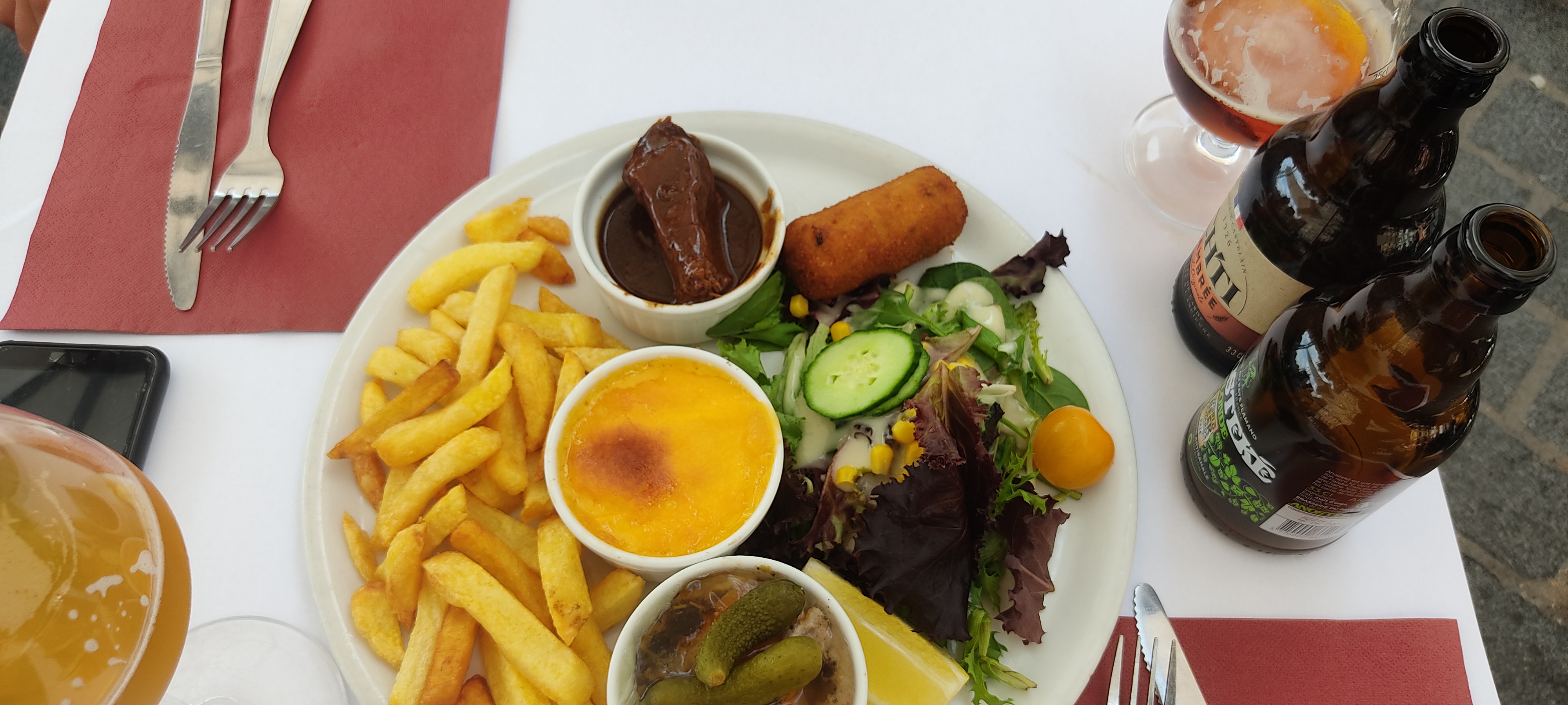 Belle surprise, pour un lieu qui est sur une place très touristique, super accueil du serveur, et belle découverte des frites maroilles! Ferme assez tôt la terrasse pour un vendredi soir ce qui est assez dommage, c'est le seul petit bémol.