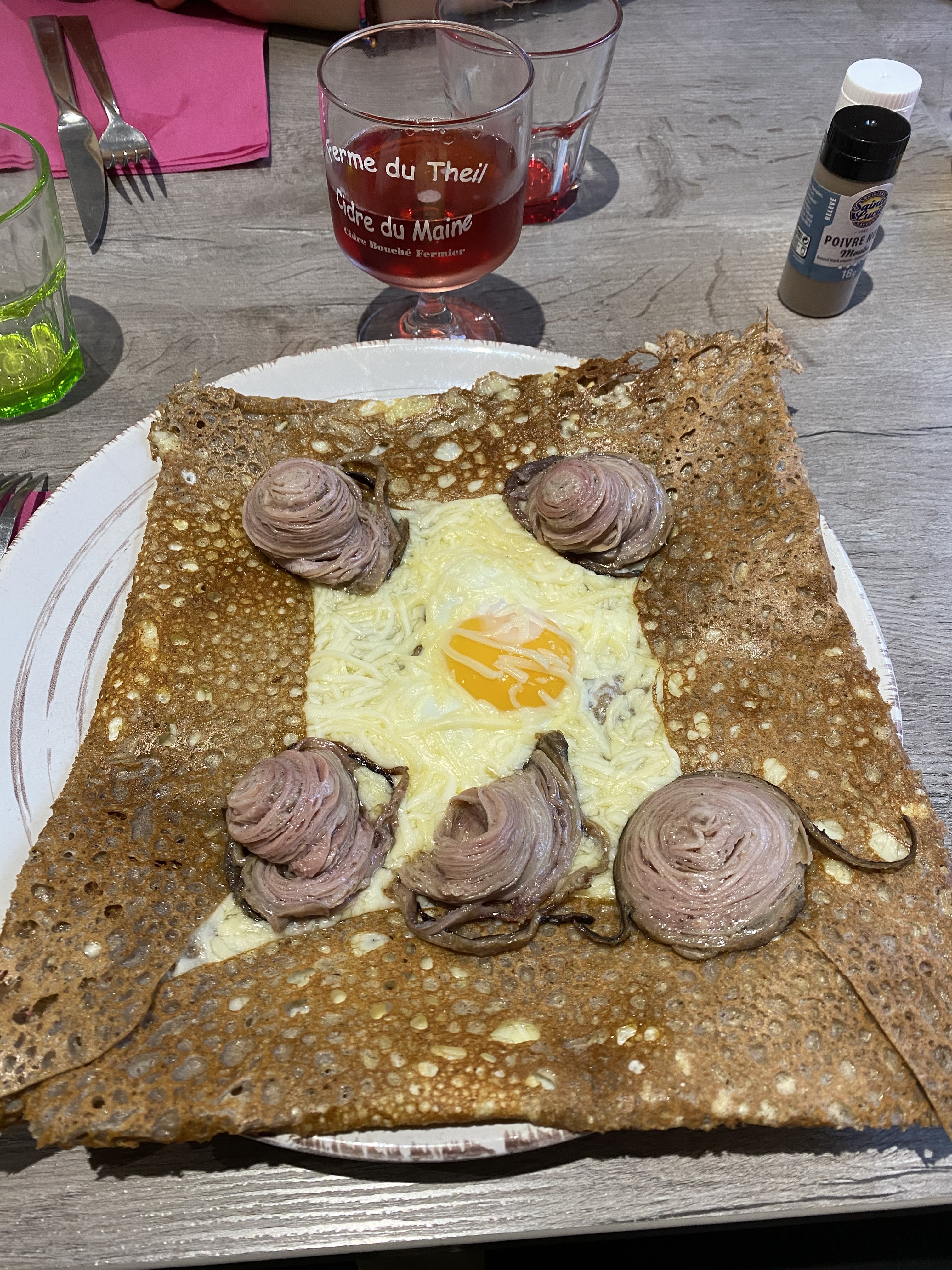 La pâte à galette est un peu fine mais celle avec des pommes, l andouille et le fromage elle est terrible.