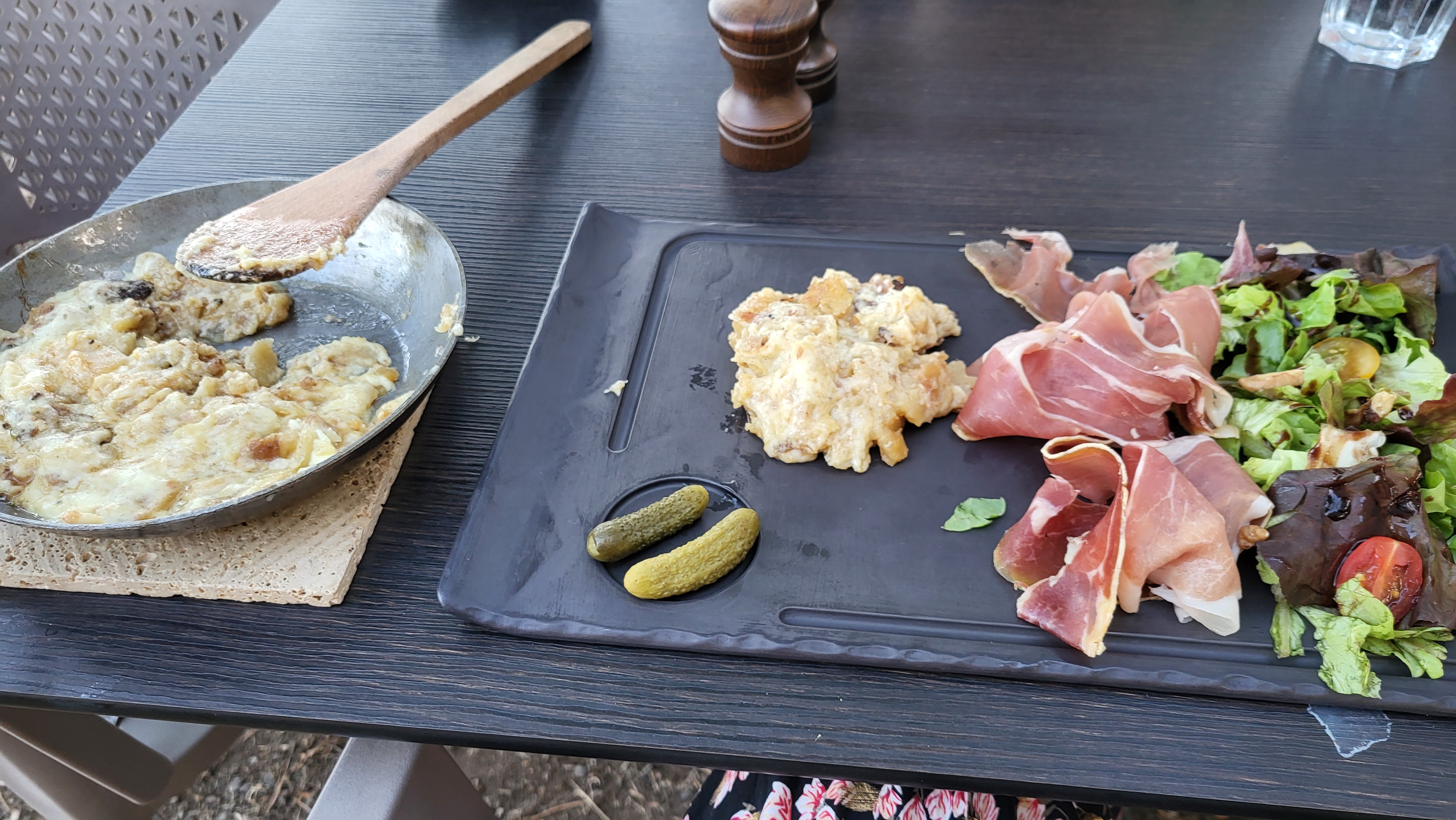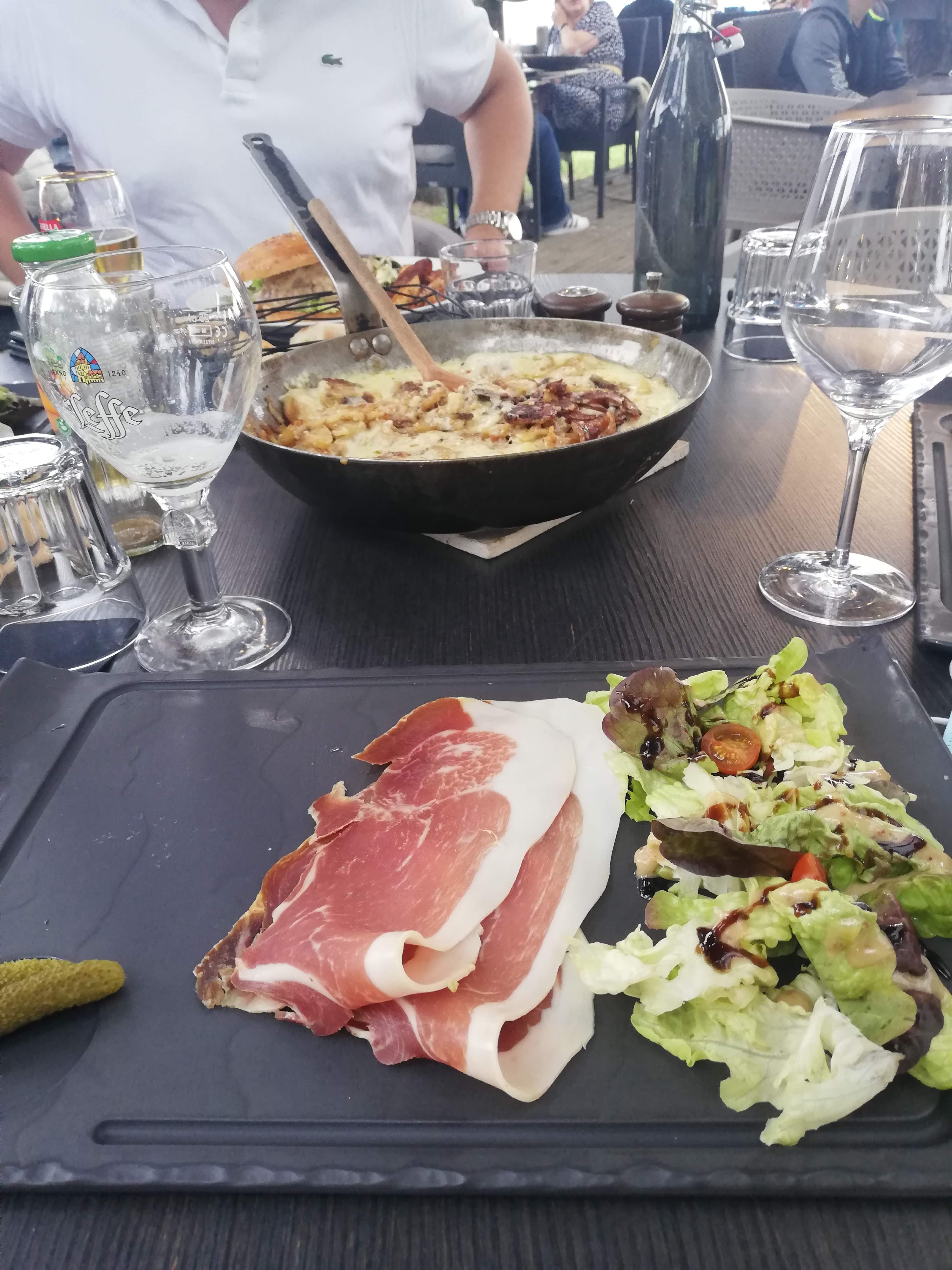 J'ai été très déçue, nous avons pris un mont d'or pour deux 75 euros. Dans l'assiette deux tranches de jambon cru très fine base qualité six tranches de saucissons très fine qualité très moyenne un peu de salade et 5 pommes de terre grenailles. Le prix est très excercif par rapport à l'assiette. Pour ma part c'est un attrape touristes, car le lieu et la salle sont magnifiques. Le service et l'accueil sont bien, mais il y a que 3 tables occupées.