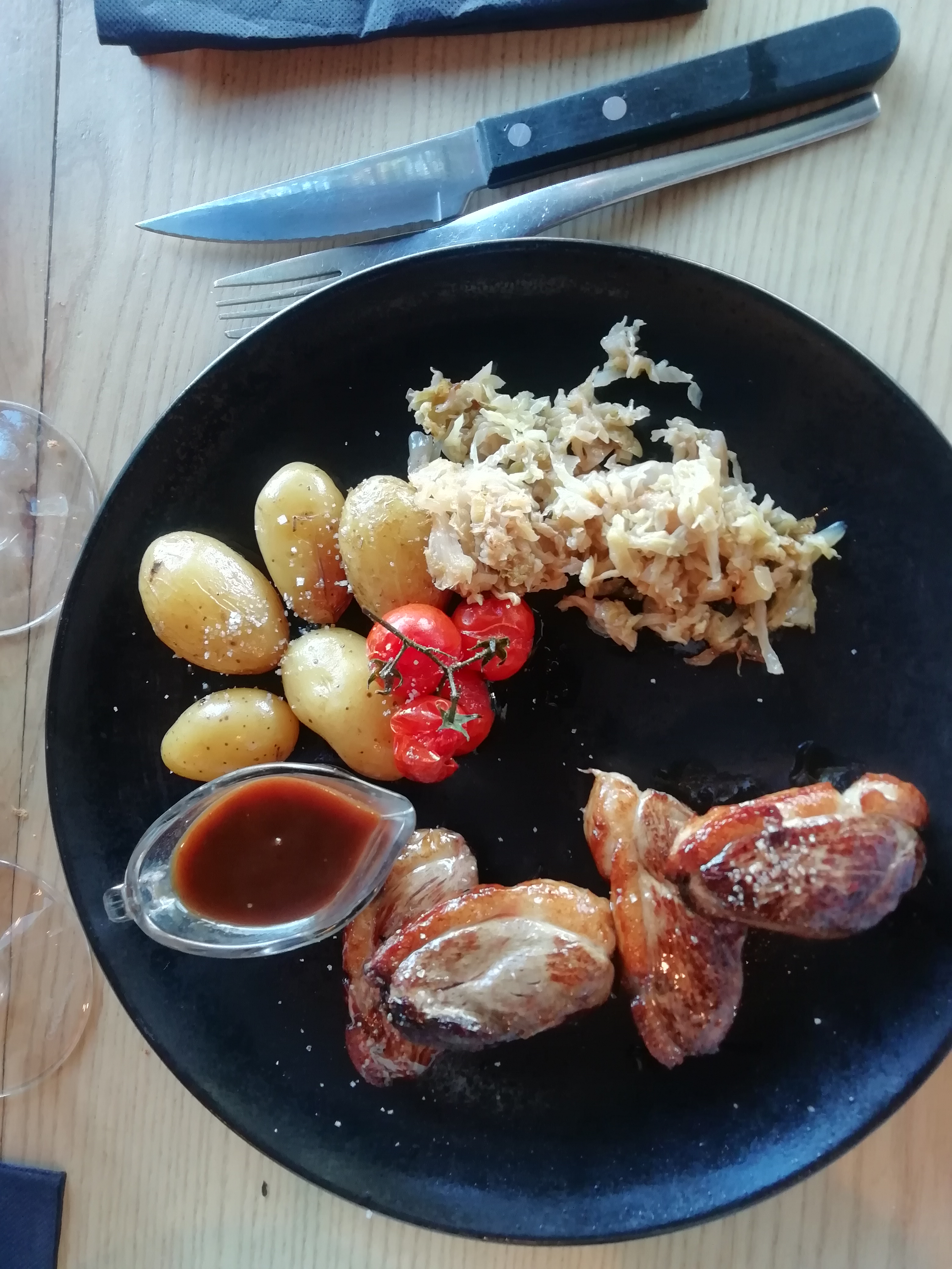 Restaurant agréable jolie vue Les plats sont bons Je mets trois étoiles pour les raisons suivantes : canard surcuits (donc dur et peux goûteux) Service très long alors que nous sommes en fin de saison et restaurant peux fréquenté ce jour. Sinon le foie gras était très bon ainsi que le palerons de bœuf. À recommander après la visite du musée qui est très instructive.