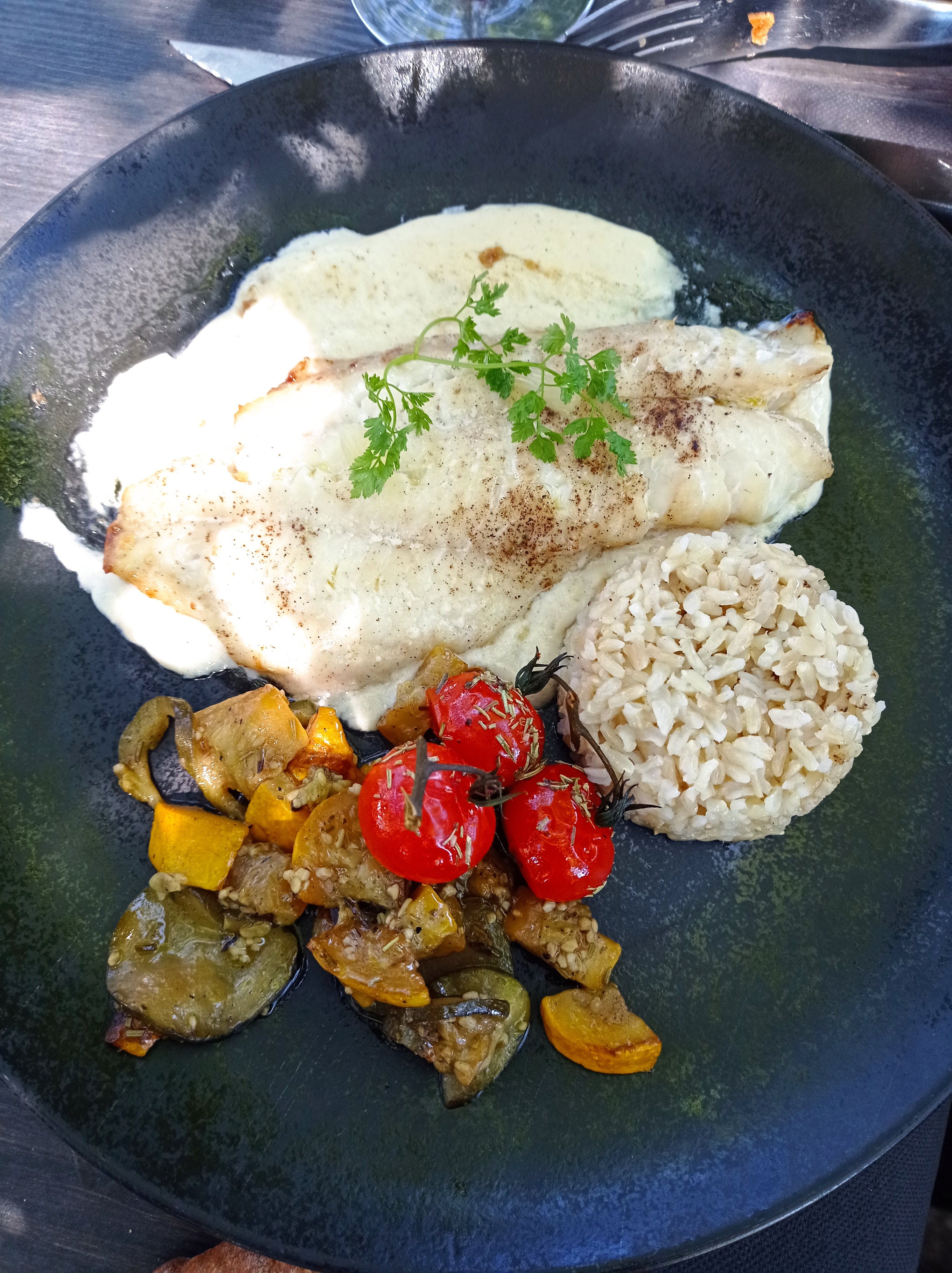 Très bon repas, le problème venait surtout des guêpes qui étaient autour de nous en permanence. Ils ont mis en place un système permettant de les faire fuir en faisant brûler du café dans un bol mais cela fonctionne qu'au bout d'un certain temps, nous avons finalement réussi à manger tranquillement mais enfumé.. Les desserts sont à tomber, il ne faut pas que le patissier soit débauché pour aller ailleurs 😁