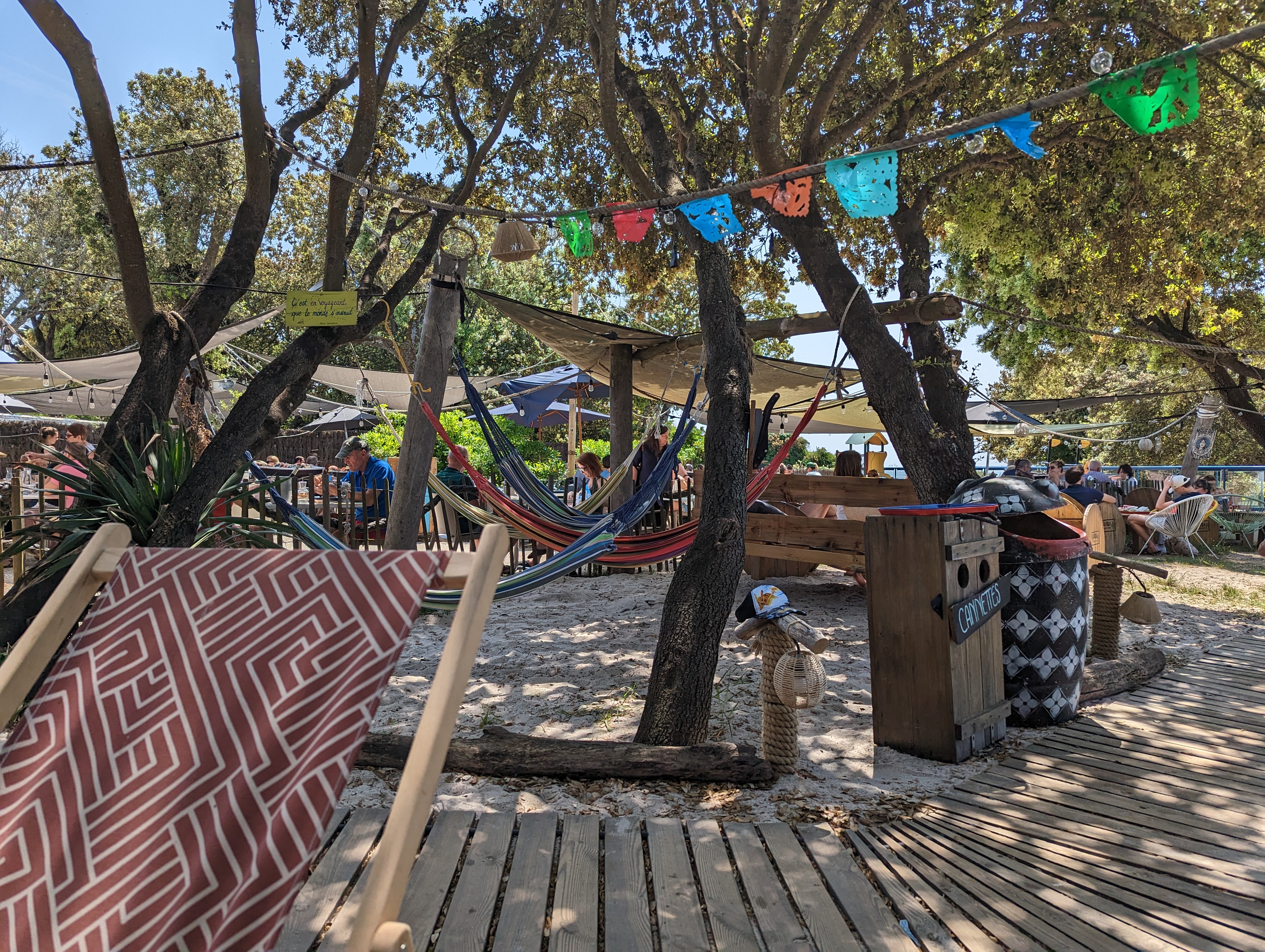 L'établissement dispose d'une terrasse et d'un espace de détente (transats et hamac sur du sable) très agréables. Les paninis étaient très bons et bien garnis et les frites, bonnes également. Si vous voulez manger rapidement sans vous prendre la tête, cet établissement est excellent.