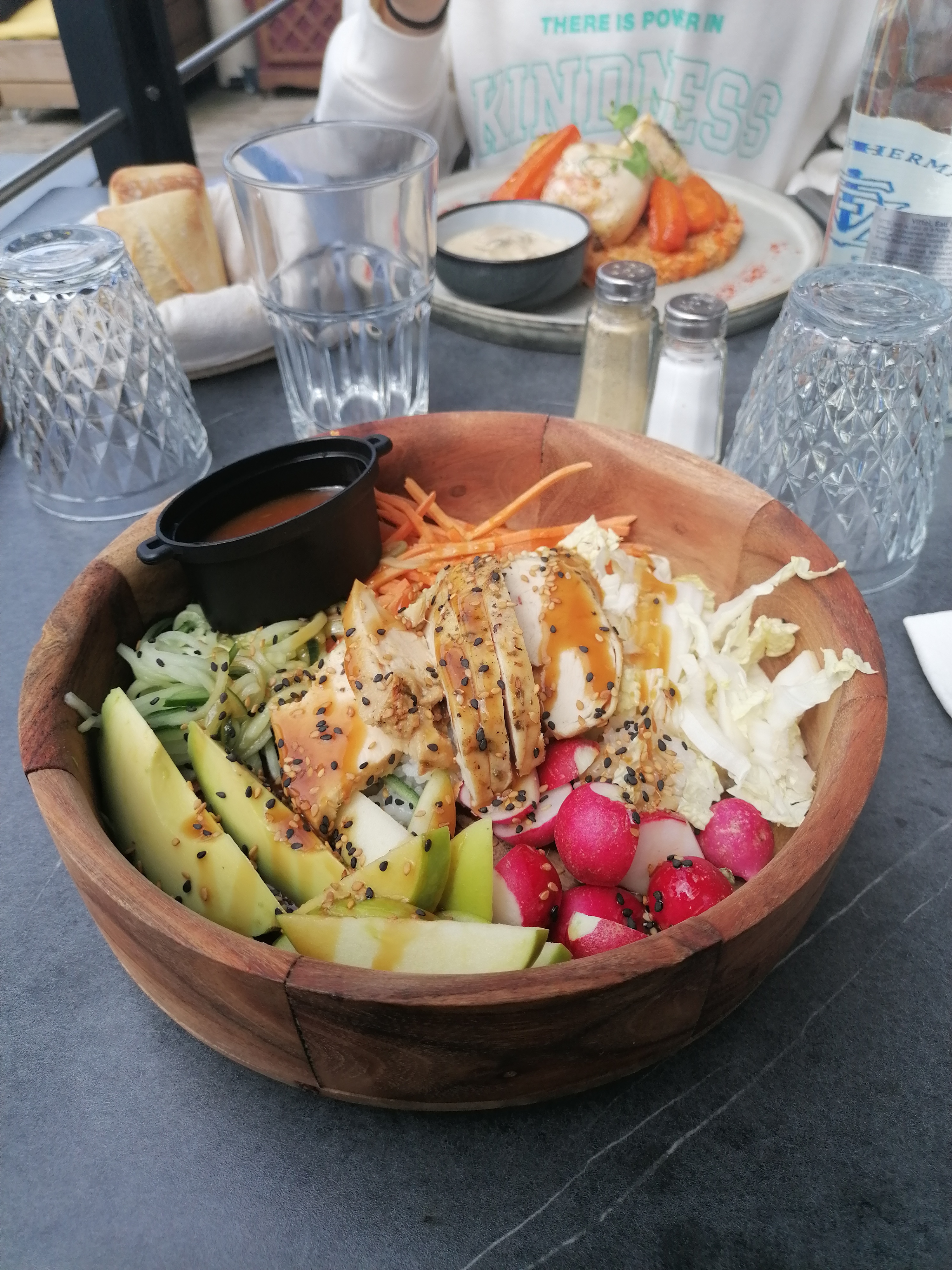 Très bon moment passé ce midi. Java Bowl au saumon en suggestion très goûteuse et copieuse. Cocktail et dessert originaux et pleins de saveurs. Merci à notre serveuse Marion qui comme à son habitude nous sert rapidement le midi, avec bonne humeur et énergie. Toujours un superbe accueil agréable l’été comme l’hiver. Je reviendrai pour un boeuf maturé 😋
