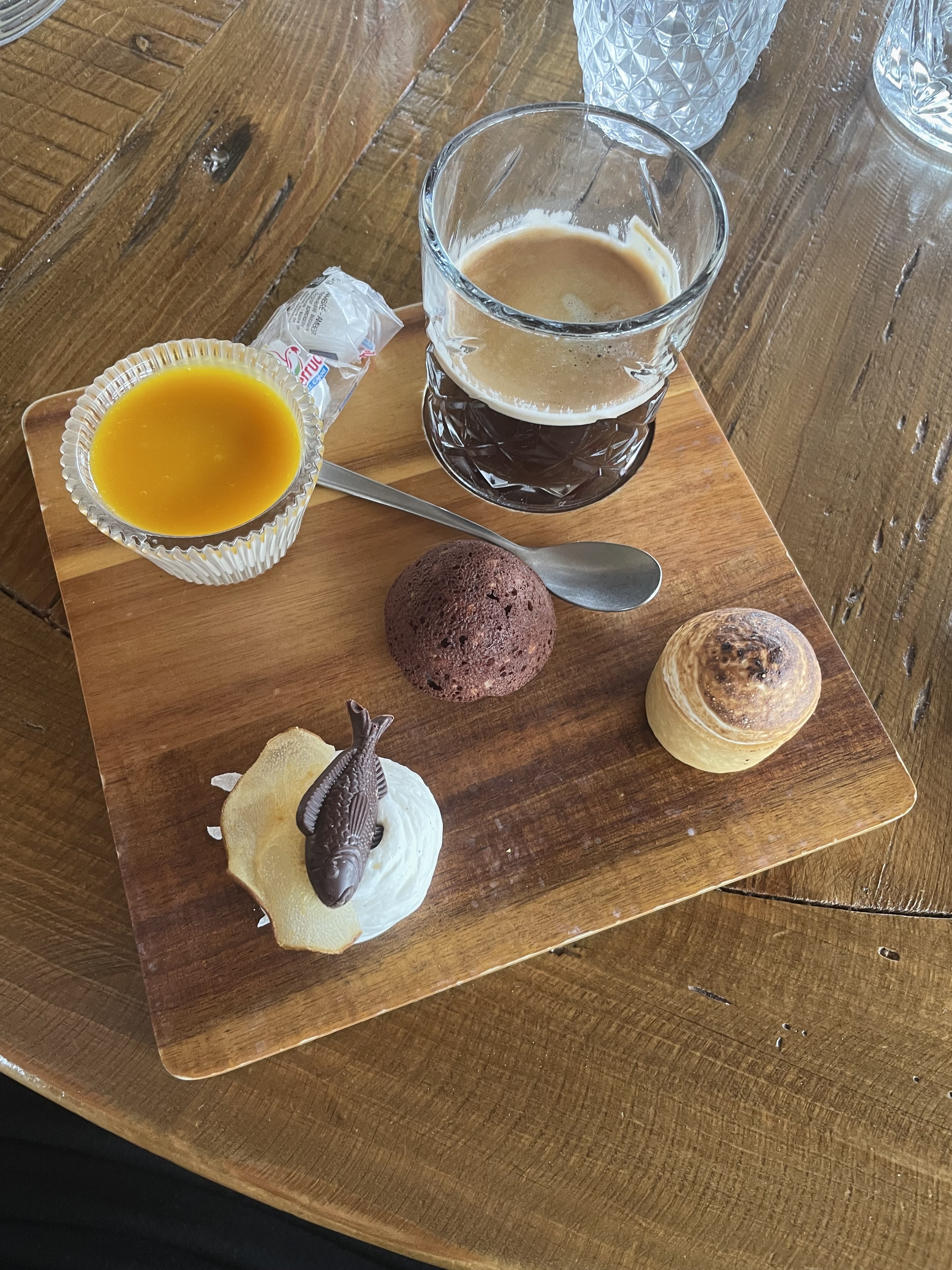 J'aime beaucoup l'ambiance et la déco. L'accueil et le service sont impeccables. La cuisine est très bonne et les assiettes sont bien garnies. Un bémol pour le café gourmand, et les desserts sont un peu chers.